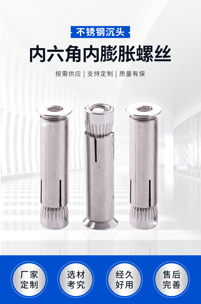 304不锈钢螺母沉头内六角膨胀螺丝定制M10紧固件平头内膨胀螺栓,批发价,价格:2,厂家直销,304不锈钢螺母沉头内六角膨胀螺丝定制M10紧固件平头内膨胀螺栓,免费拿样。
