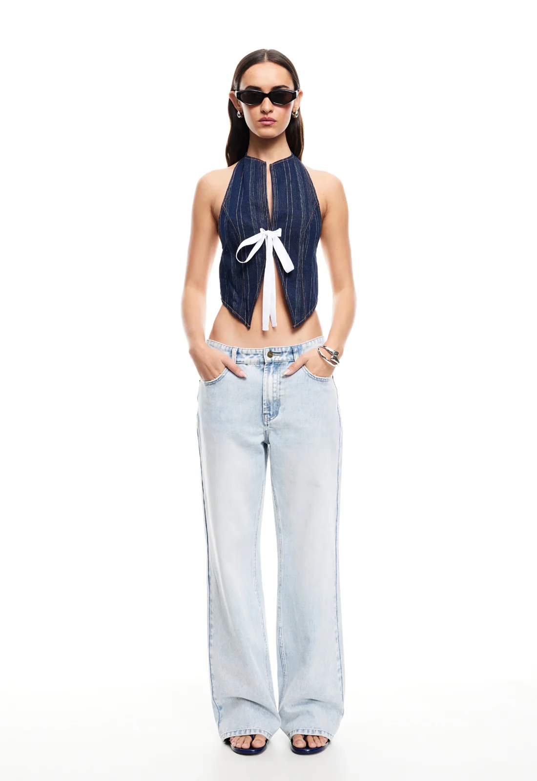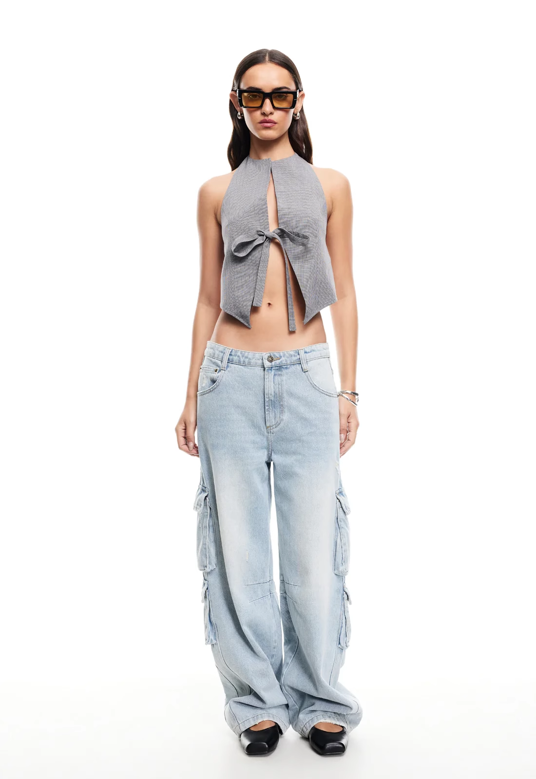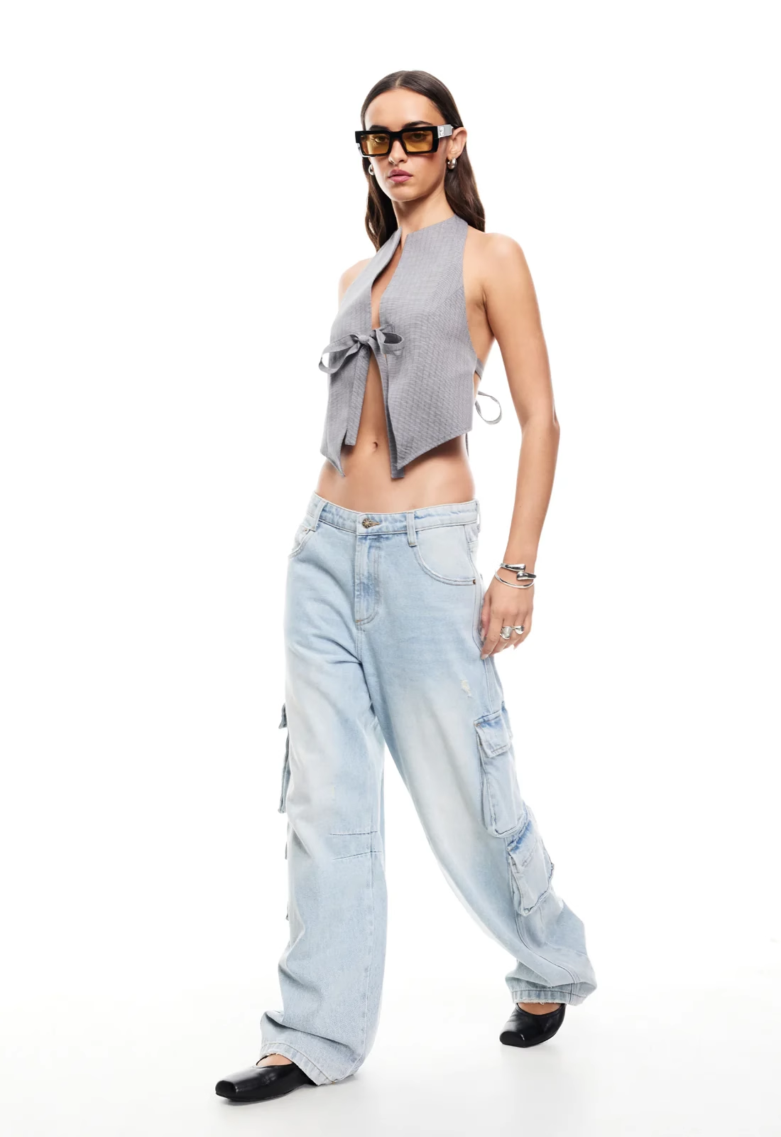 现货Lioness性感辣妹挂脖露背西装蝴蝶结系带修身上衣背心吊带