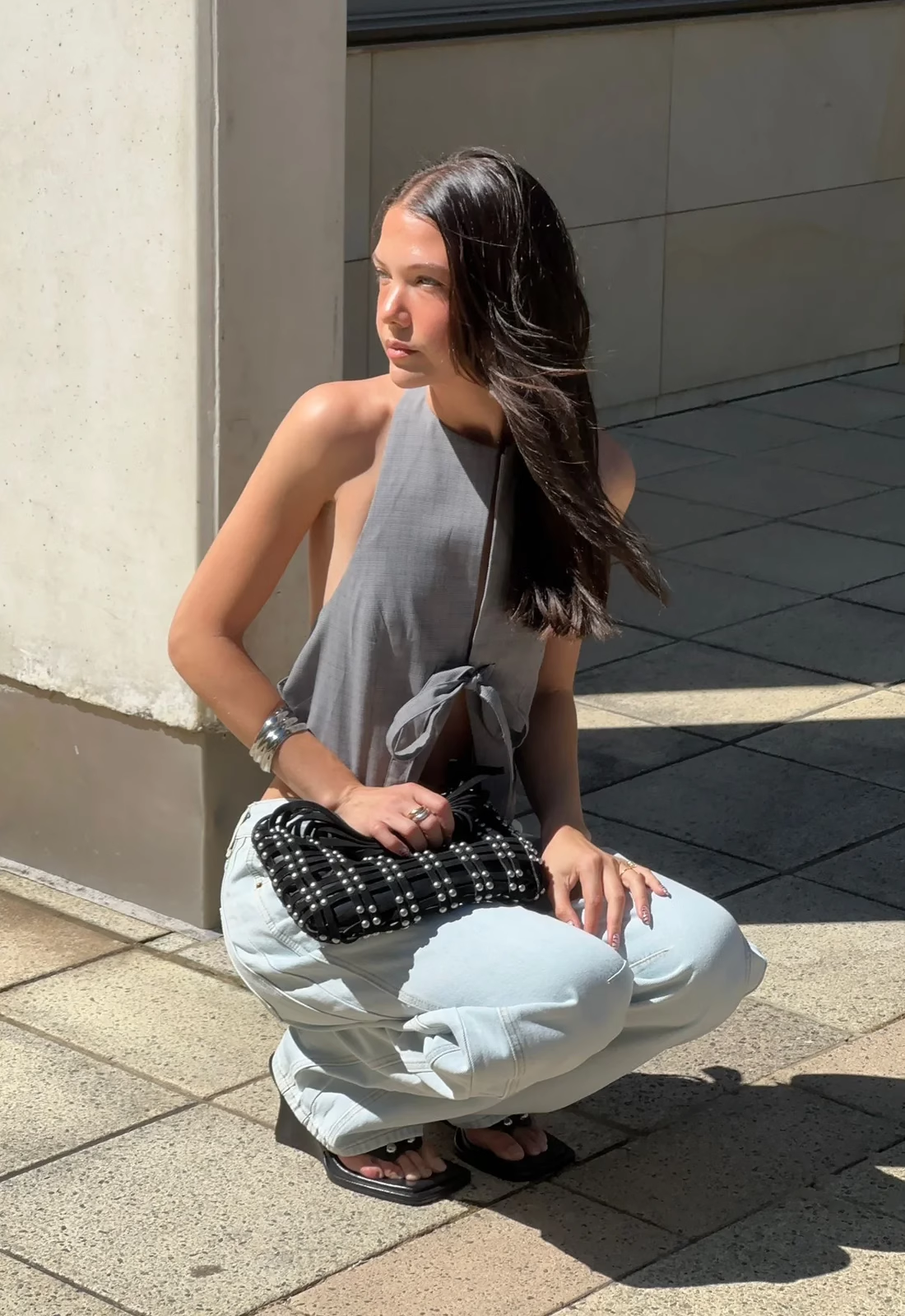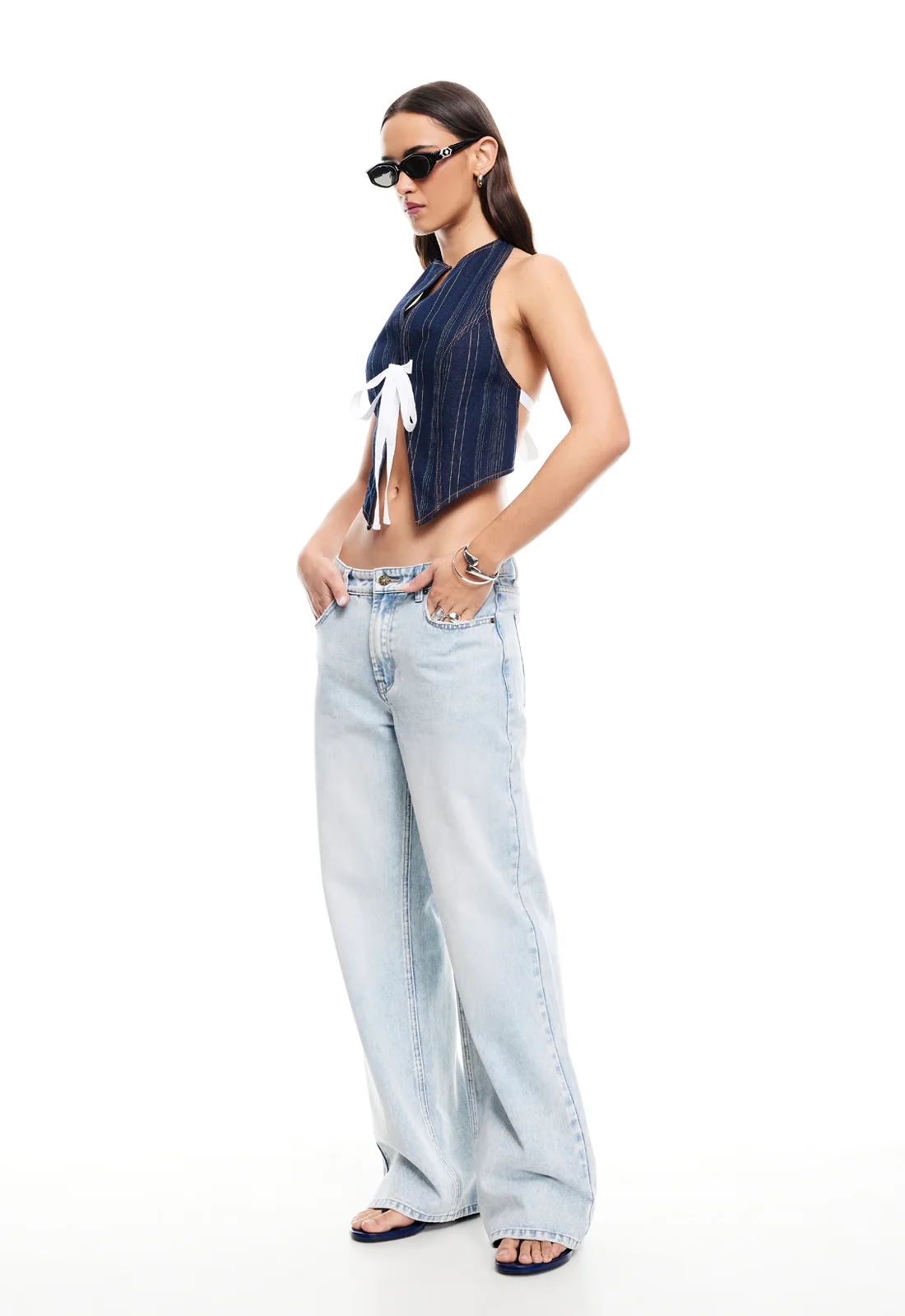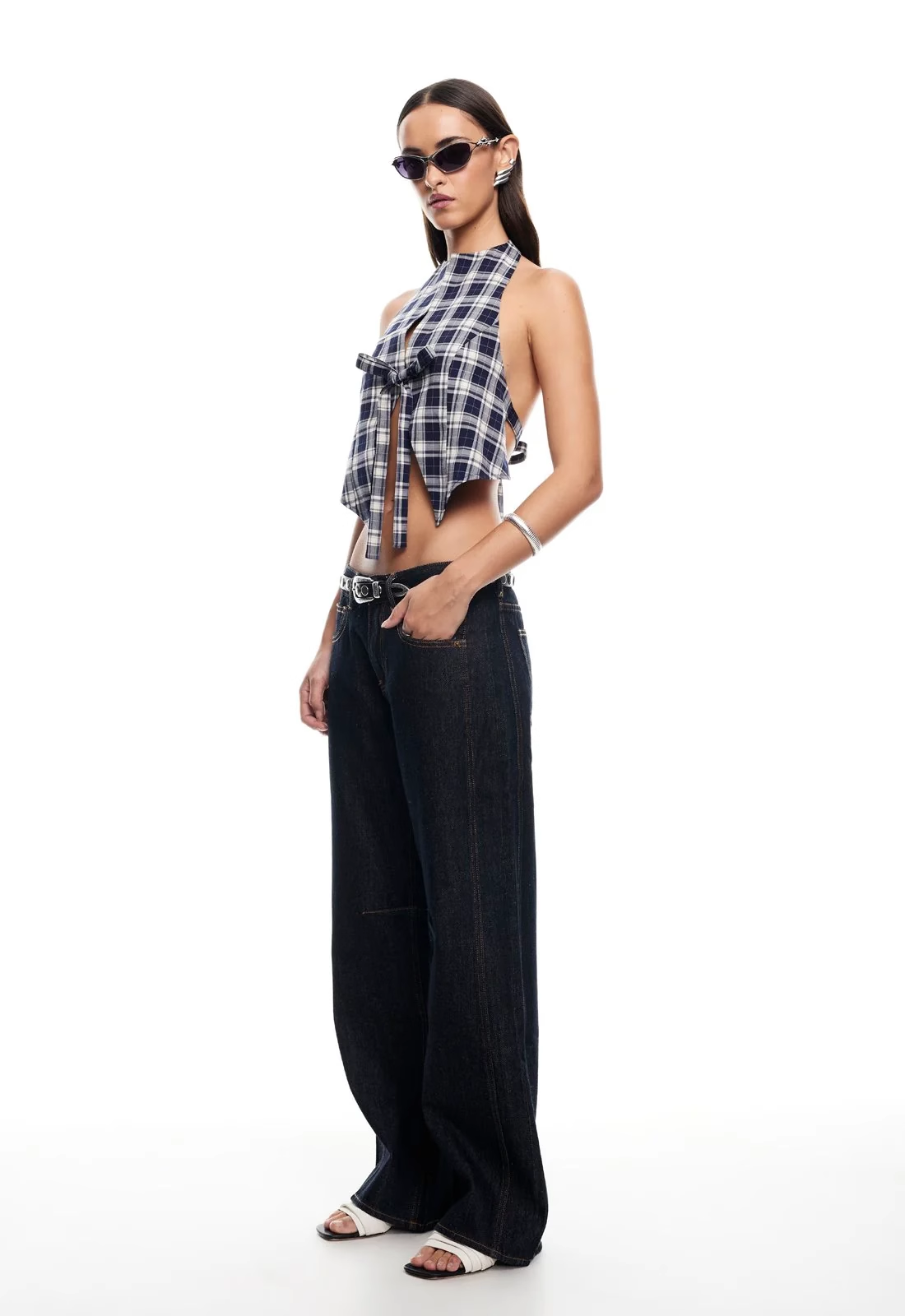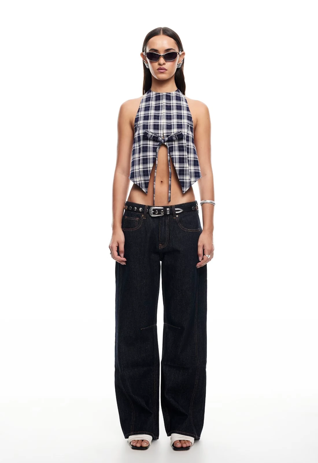 现货Lioness性感辣妹挂脖露背西装蝴蝶结系带修身上衣背心吊带