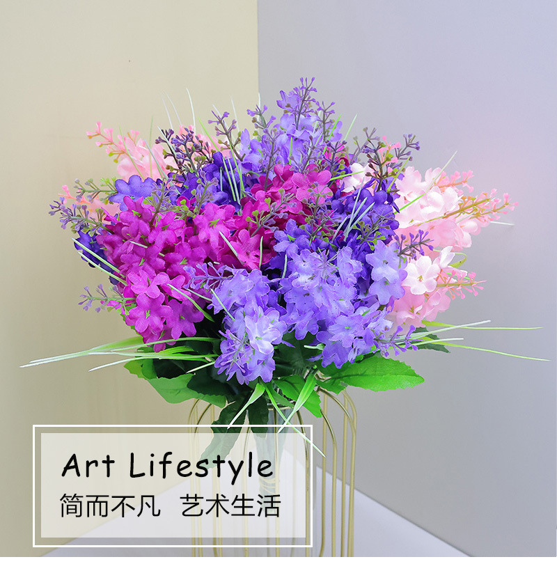 厂家批发地排仿真花5头风信子薰衣草室内摆件摄影道具婚庆装饰