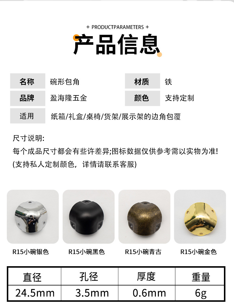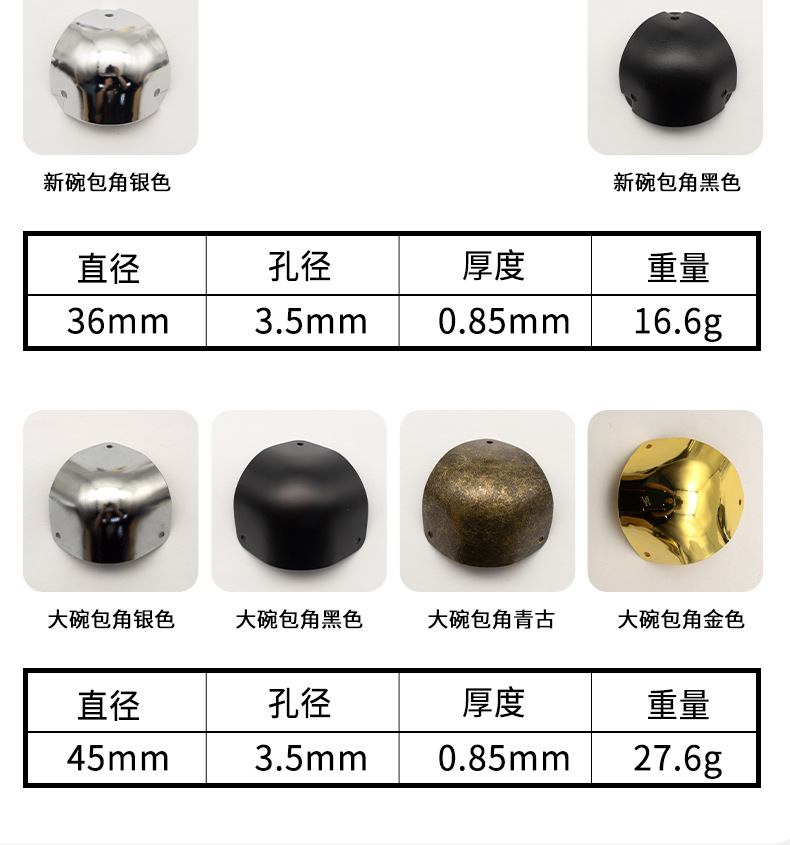 箱包五金配件铁护角大号碗形包角航空箱包防护金属护角厂家批发