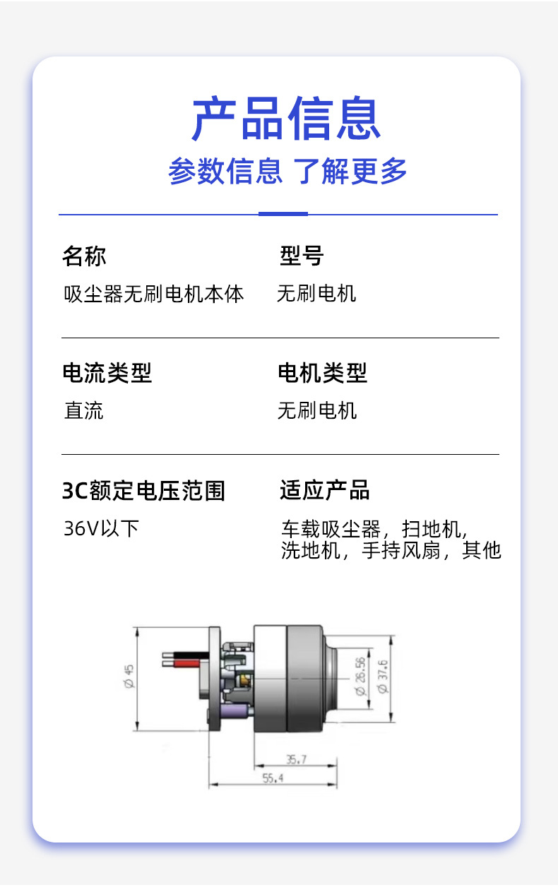 45微型无刷直流马达本体车载吸尘器扫地机洗地机气泵45无刷电机