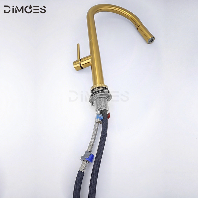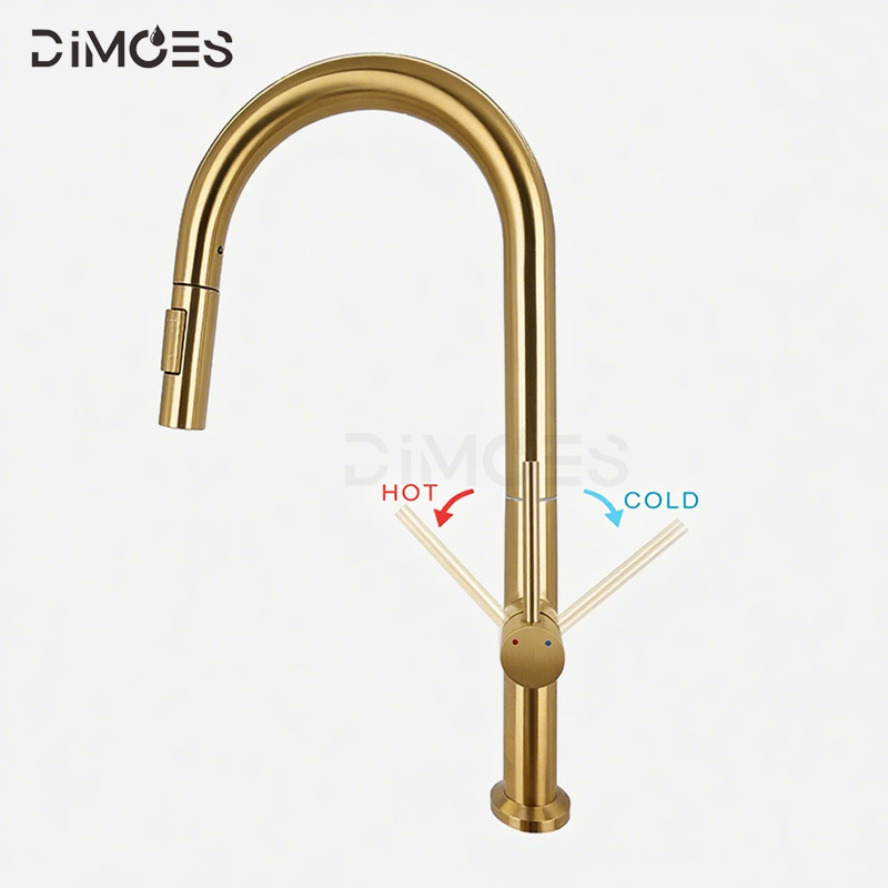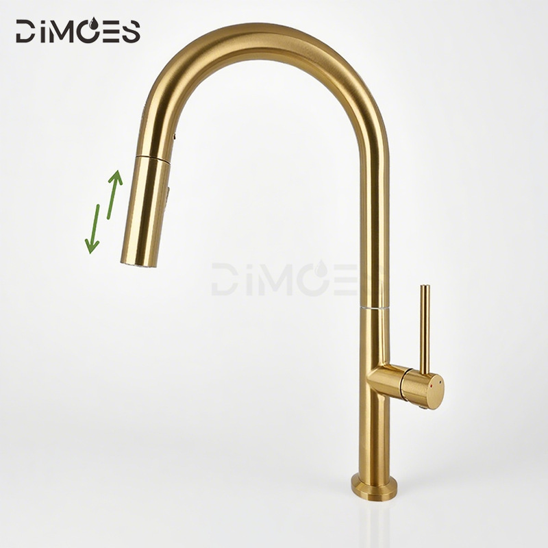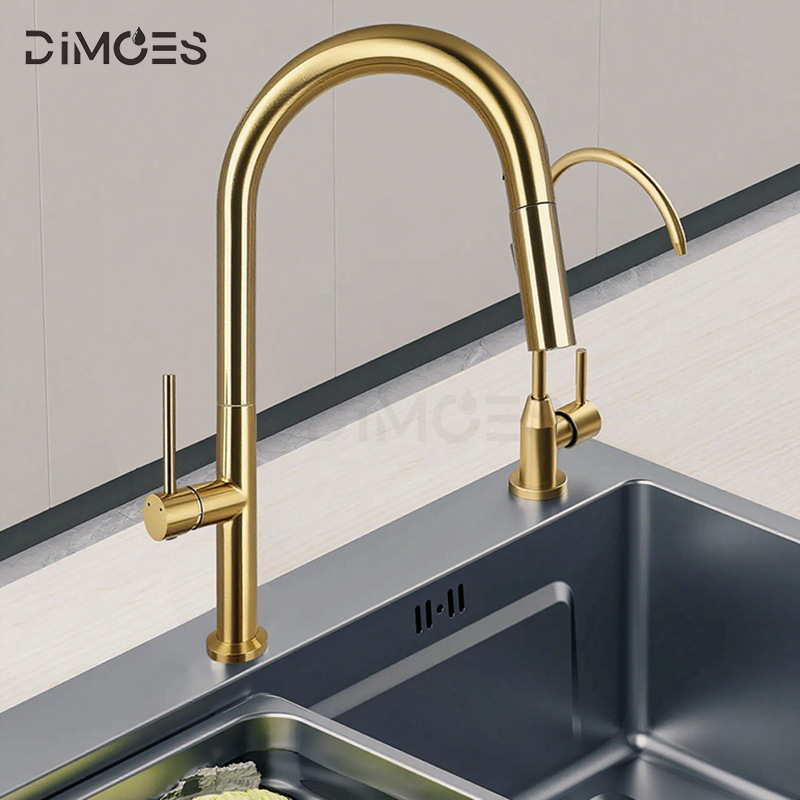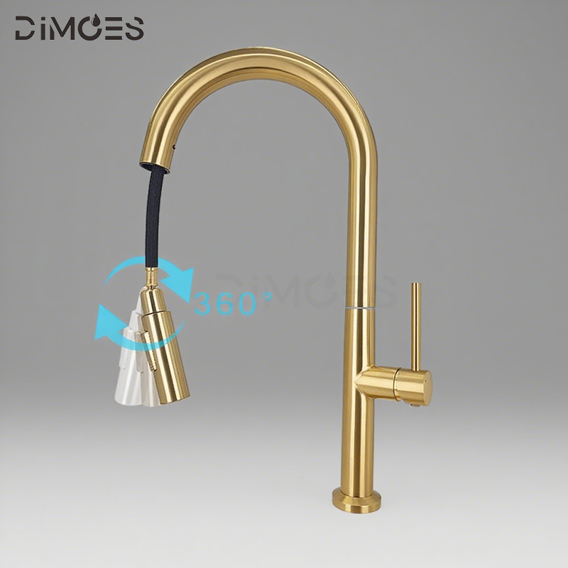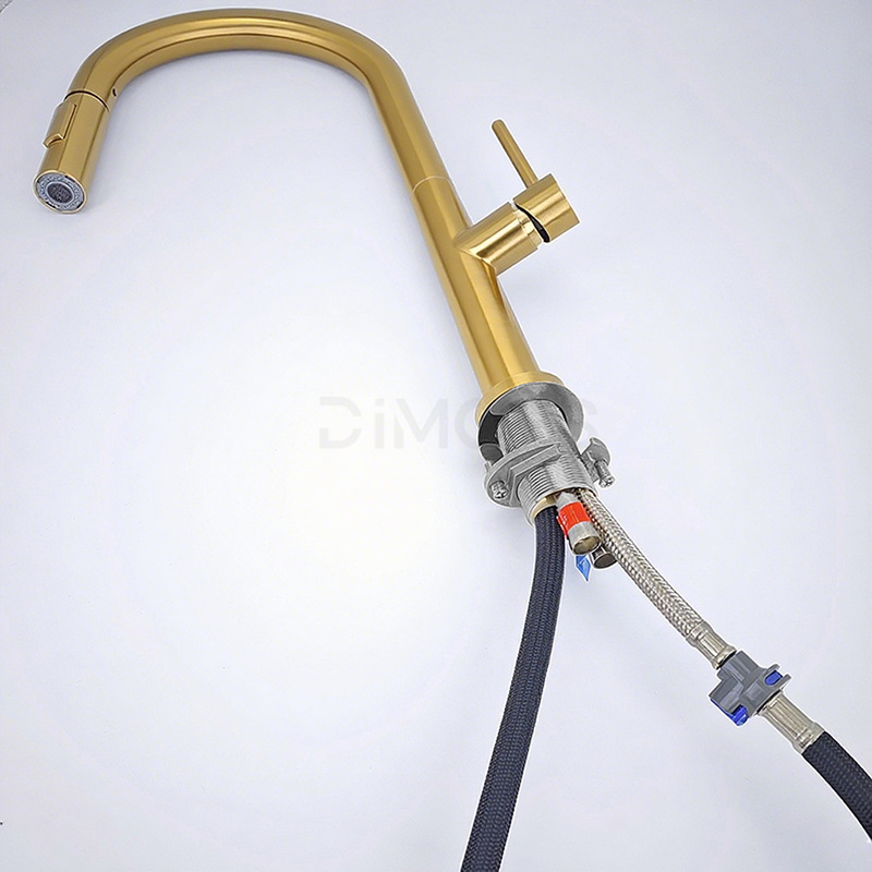 厂家直销高质量不锈钢抽拉万向时尚锆金拉丝水龙头混水厨房水龙头