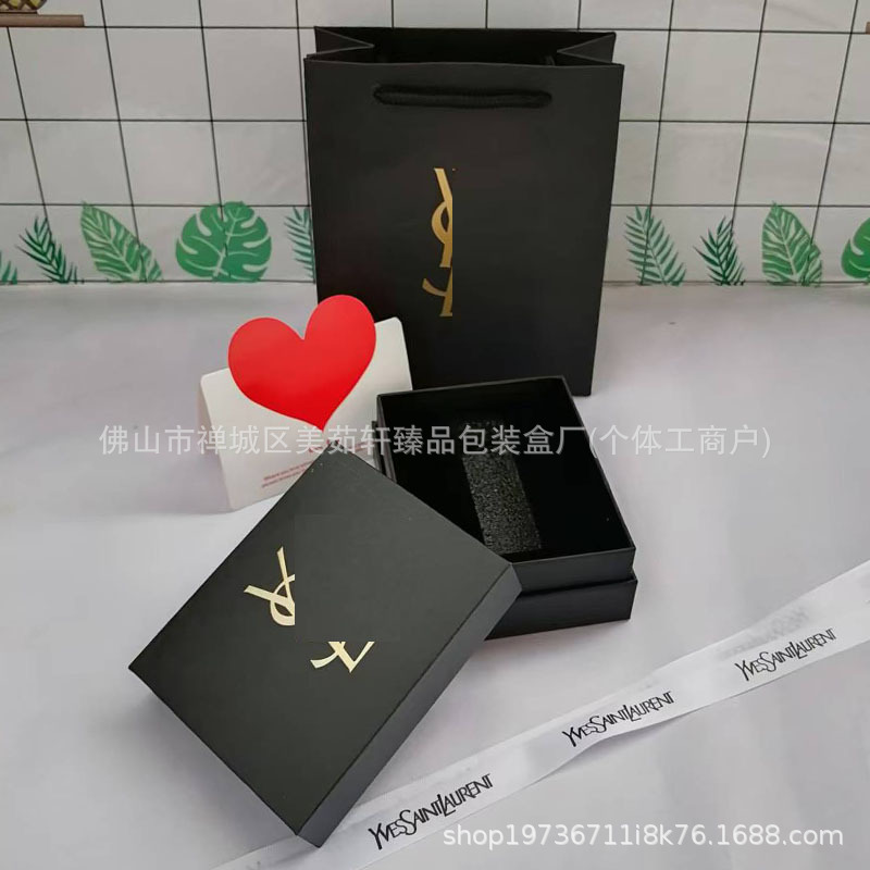 新款圣家口红香水礼盒礼品盒 Y家杨树林黑色翻盖香水包装礼品纸袋