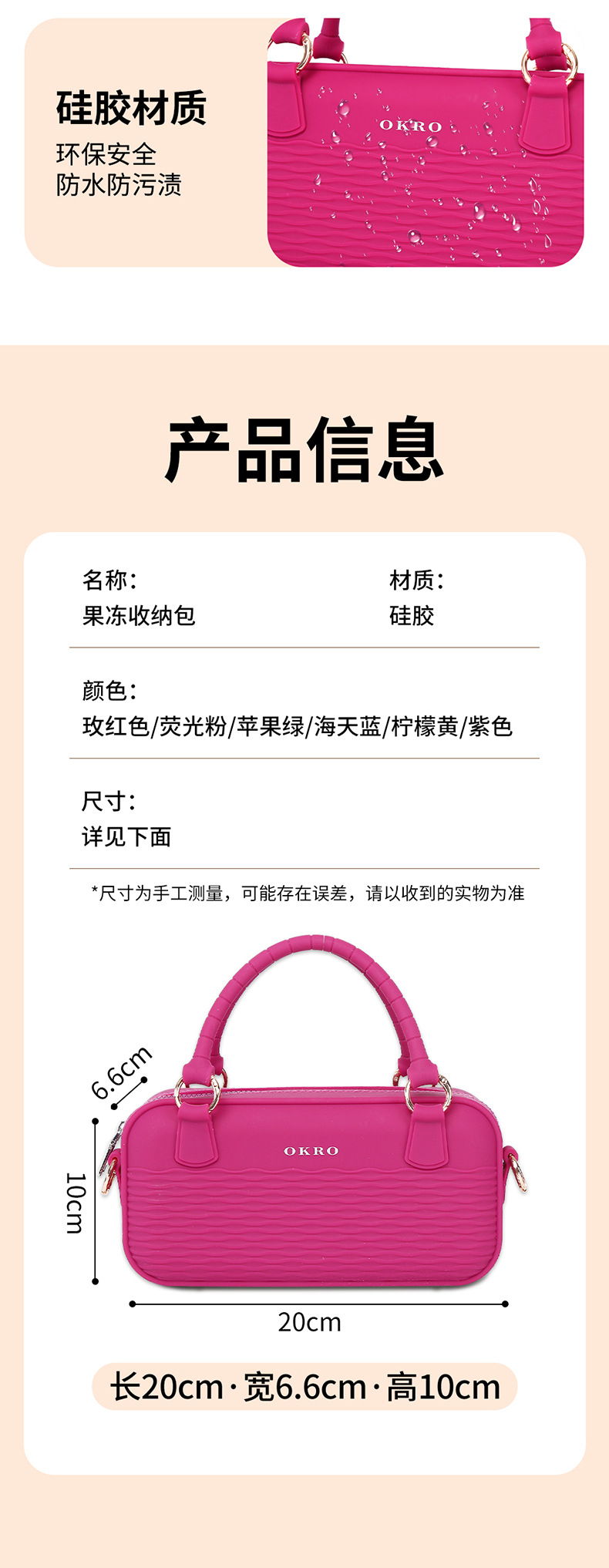 跨境新款硅胶化妆包 儿童收纳包 单肩包 可水洗手提包 时尚高级款