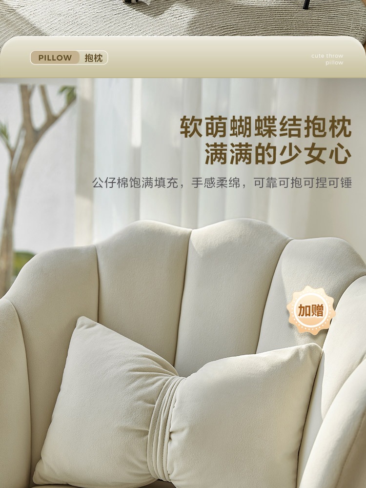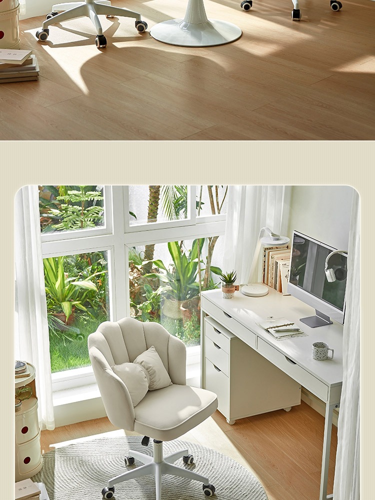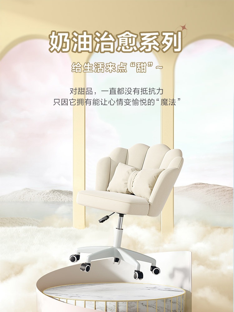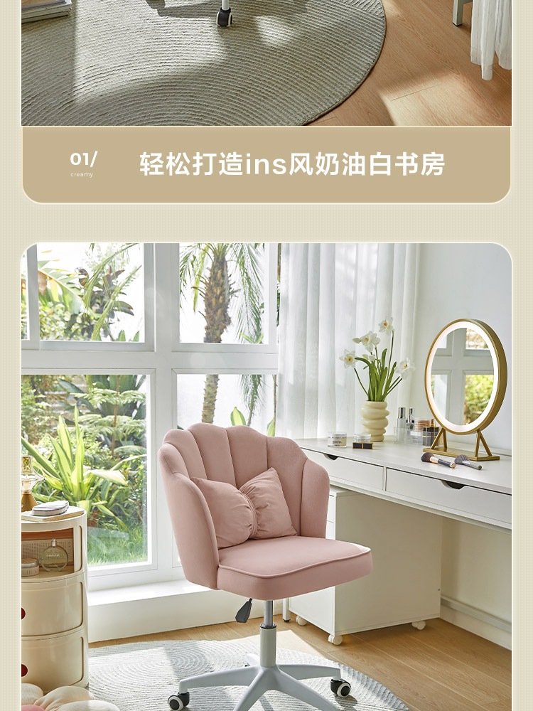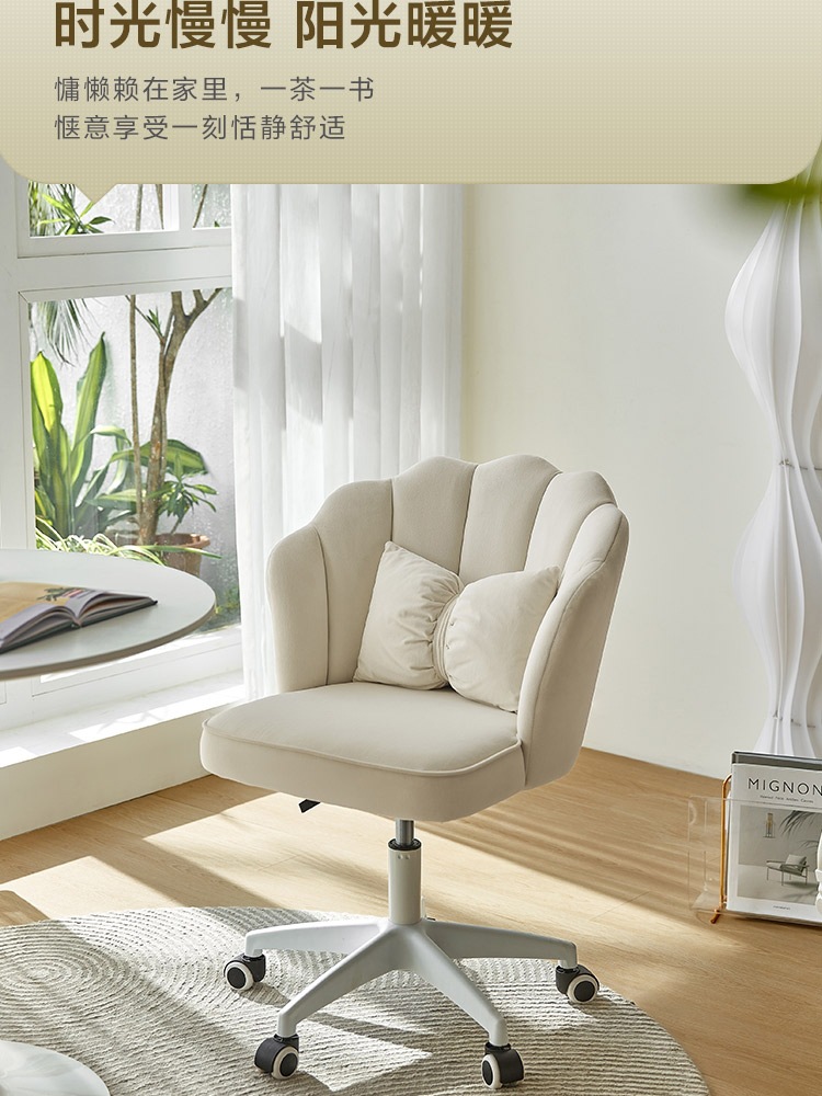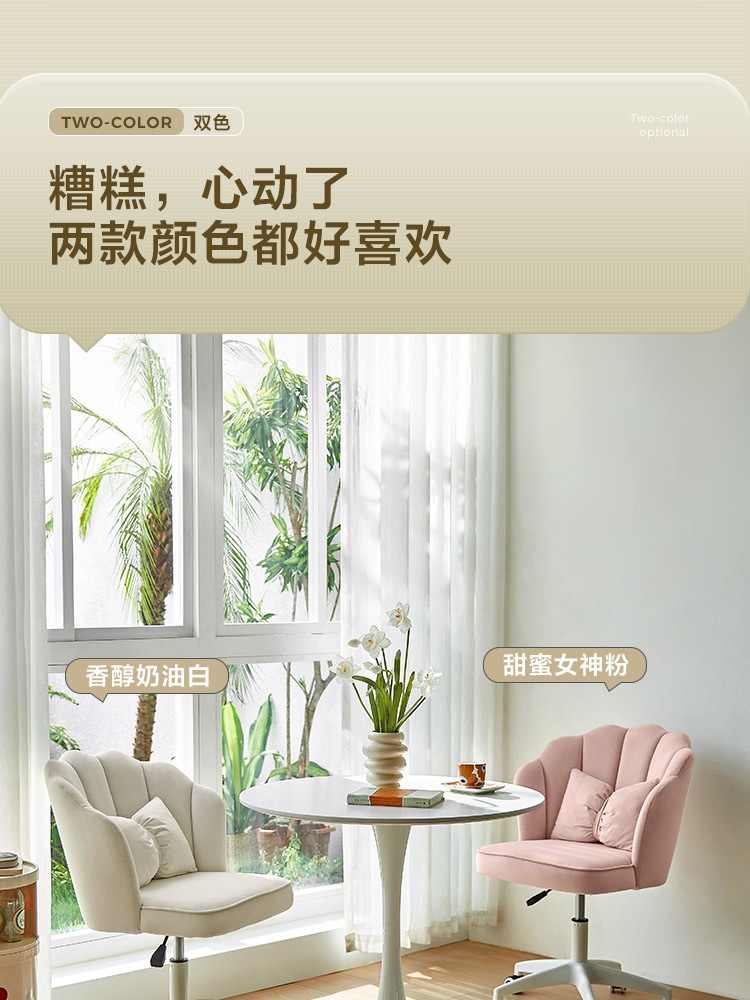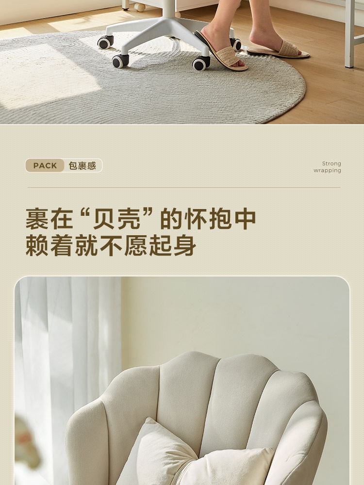 花瓣椅奶油风贝壳椅沙发靠背椅可旋转带滚轮寝室椅卧室书房椅