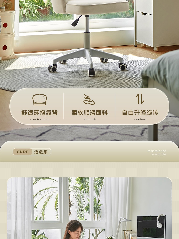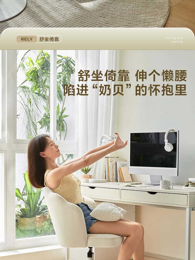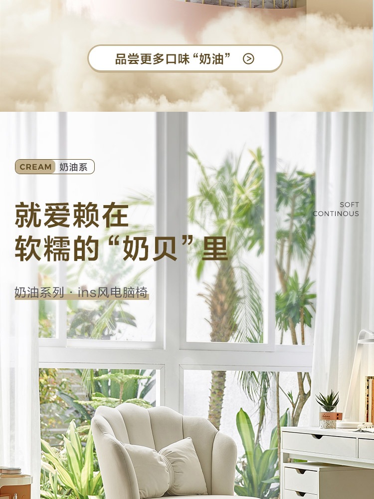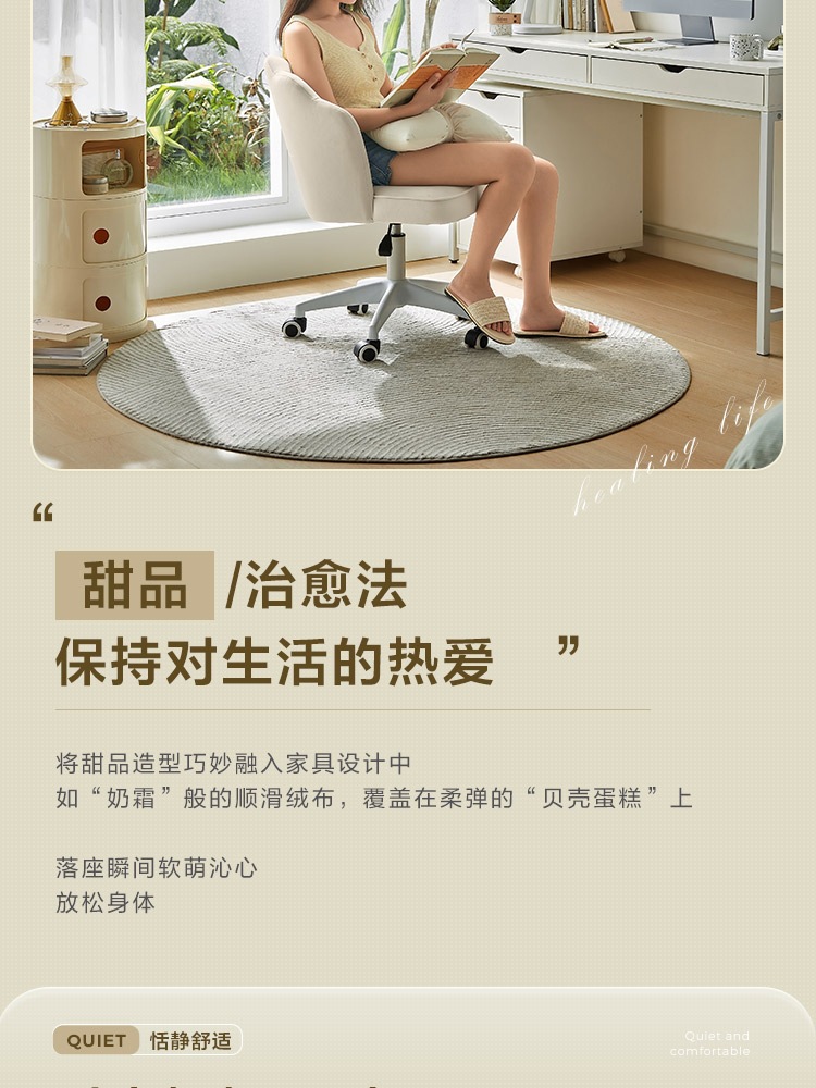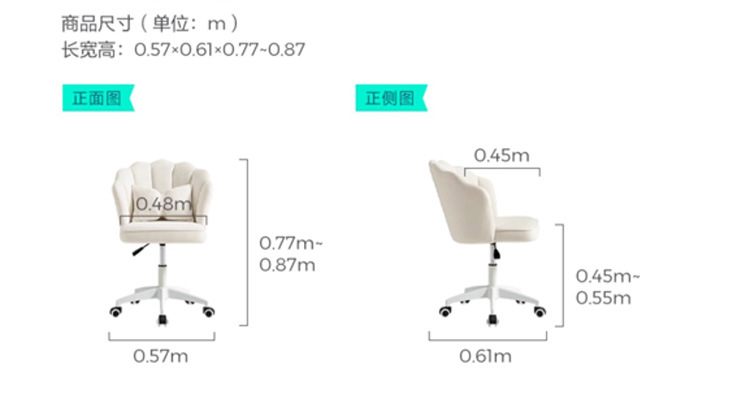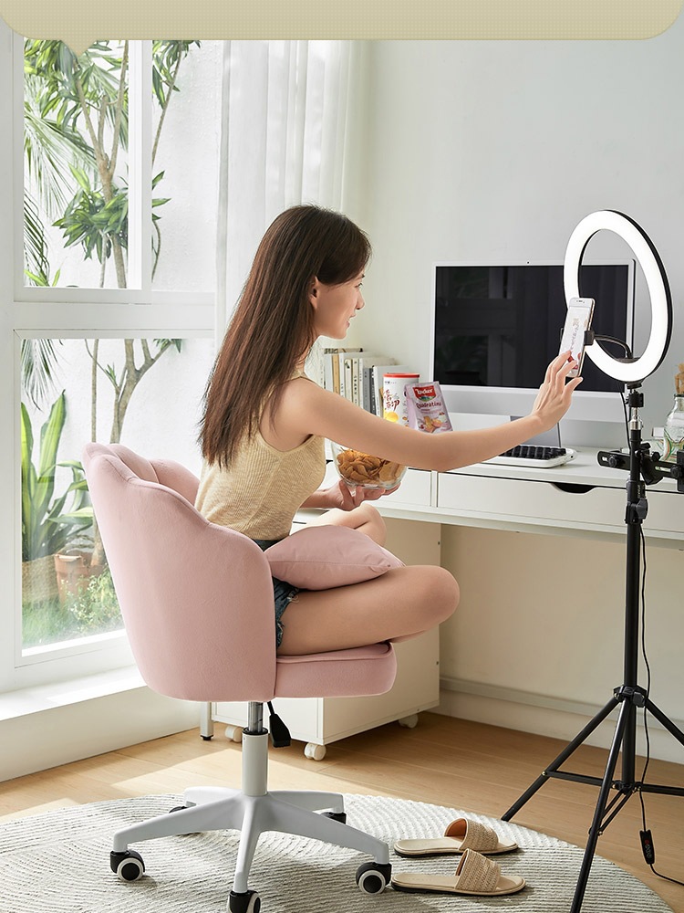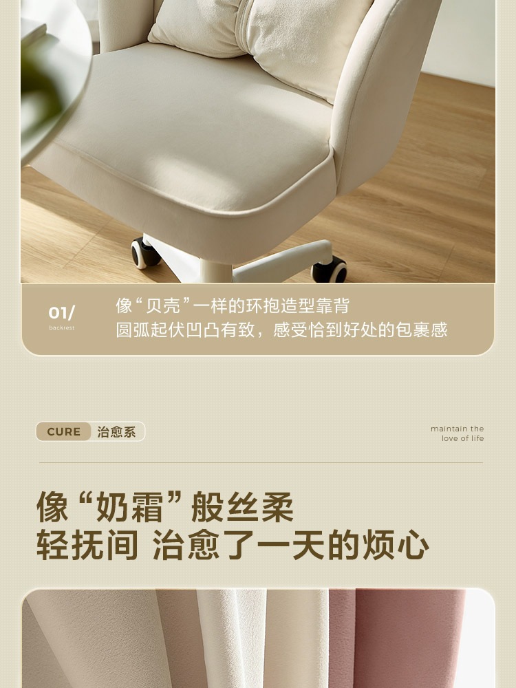 花瓣椅奶油风贝壳椅沙发靠背椅可旋转带滚轮寝室椅卧室书房椅