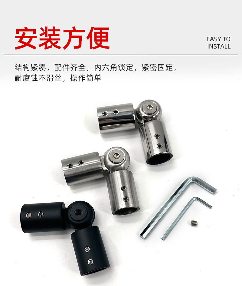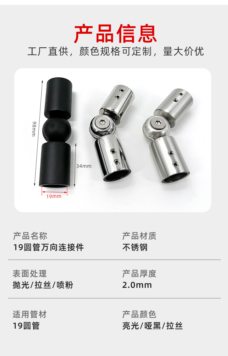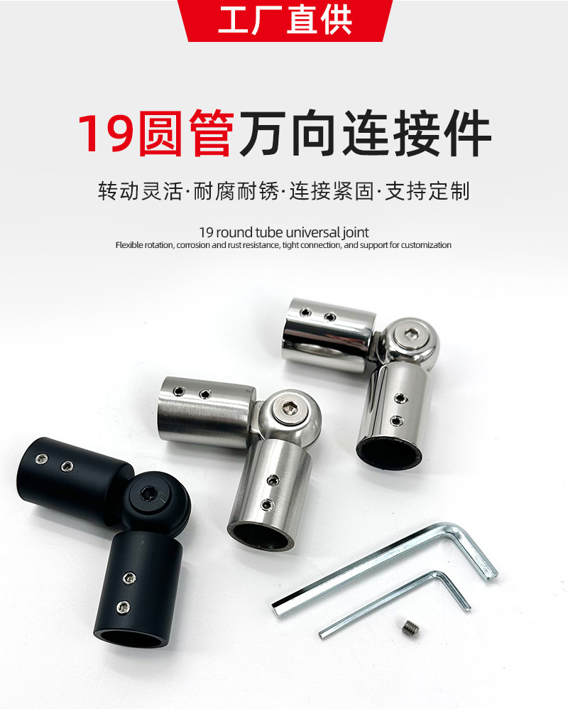 定 制不锈钢19圆管万向连接件浴室玻璃门固定件酒店淋浴房连接件
