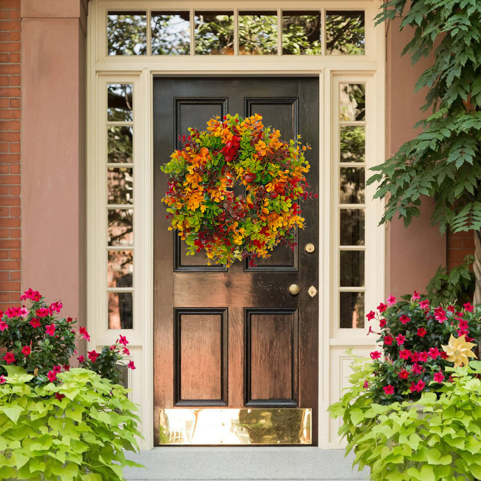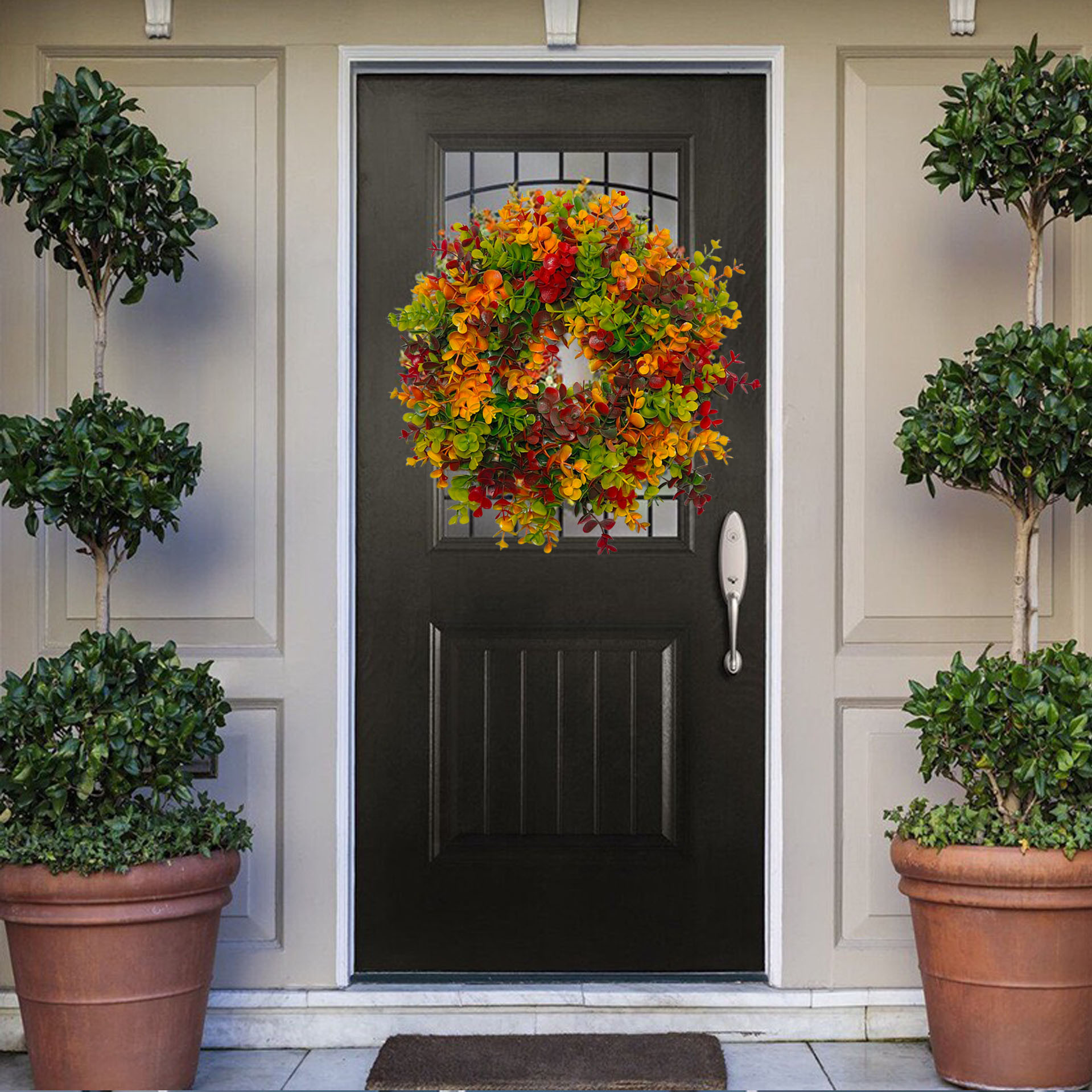 跨境厂家仿真花尤加利花环欧美门窗饰品壁挂圣诞装饰品仿真花环