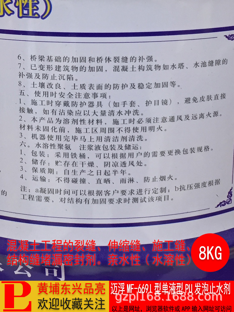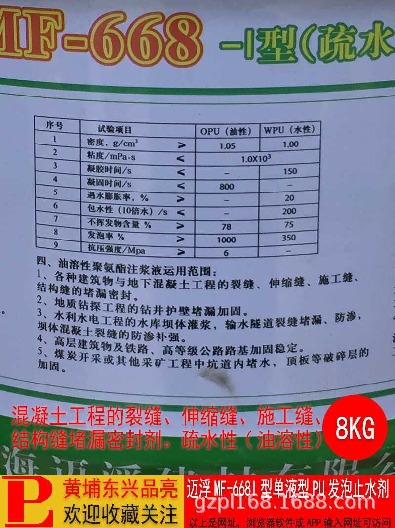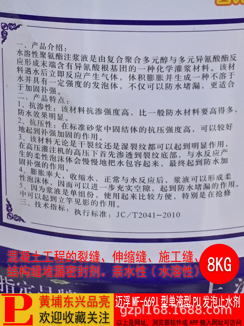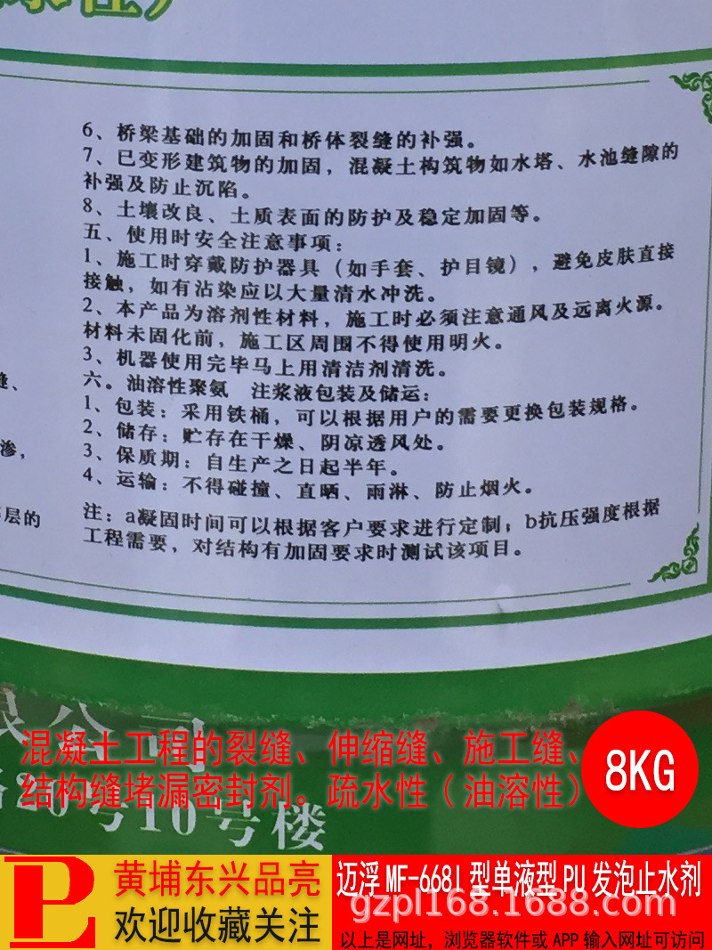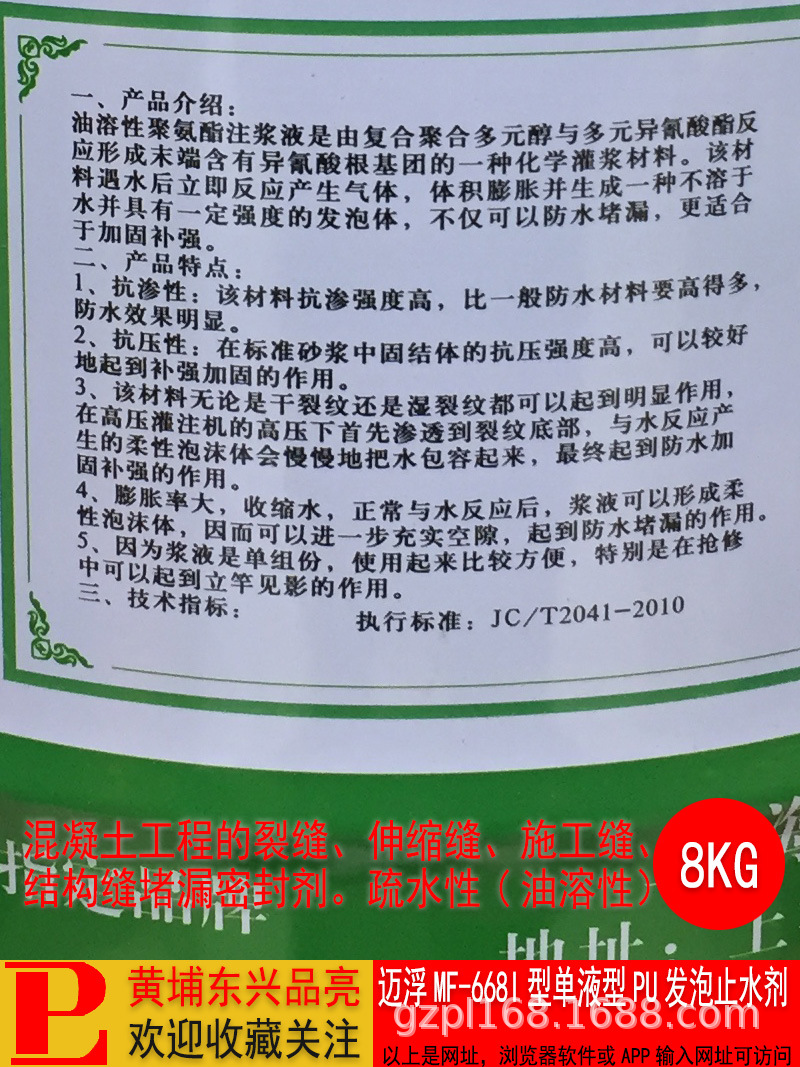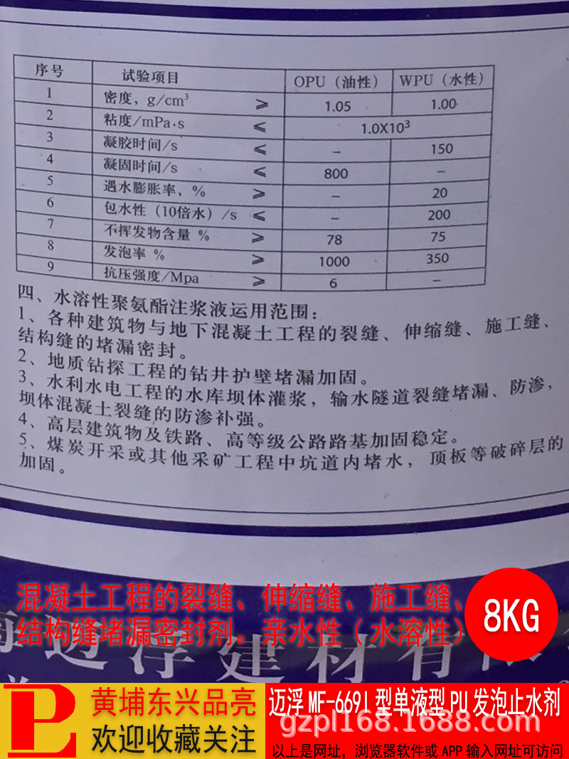 迈浮MF669I型单液型PU发泡止水剂水溶性聚氨酯堵漏剂灌浆料,批发价,价格:115,厂家直销,迈浮MF669I型单液型PU发泡止水剂水溶性聚氨酯堵漏剂灌浆料,免费拿样。
