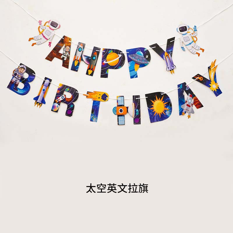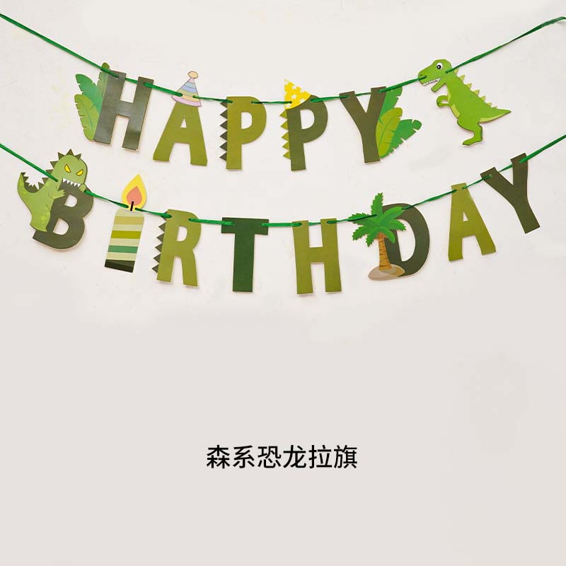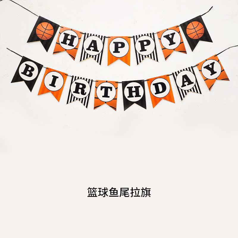 生日快乐拉旗儿童宝宝生日布置装饰品英文烫金鱼尾旗派对彩旗卡通