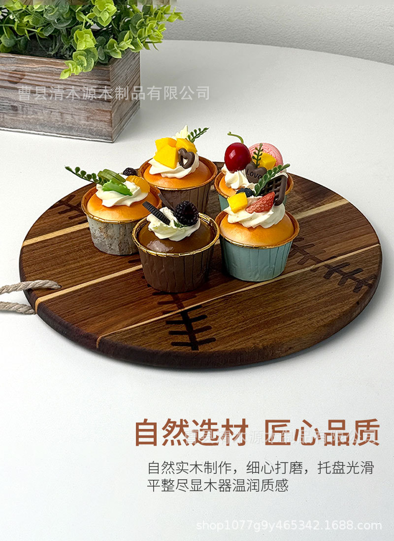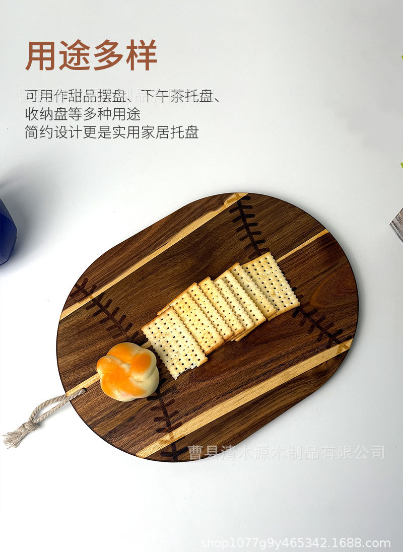 跨境棒球形状实木菜板托盘带挂绳披萨熟食盘芝士托盘棒球纪念砧板
