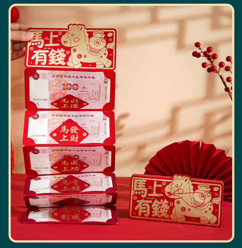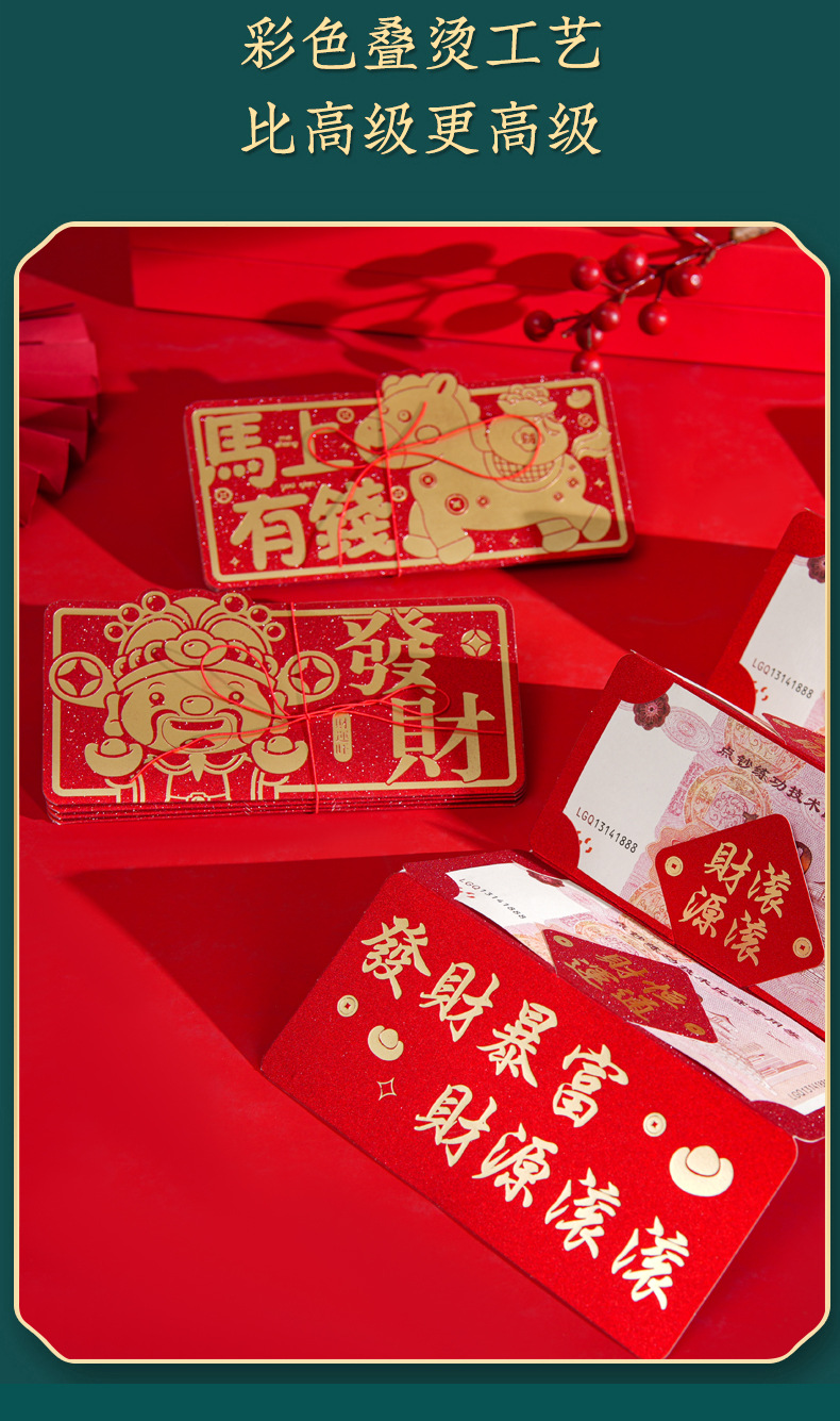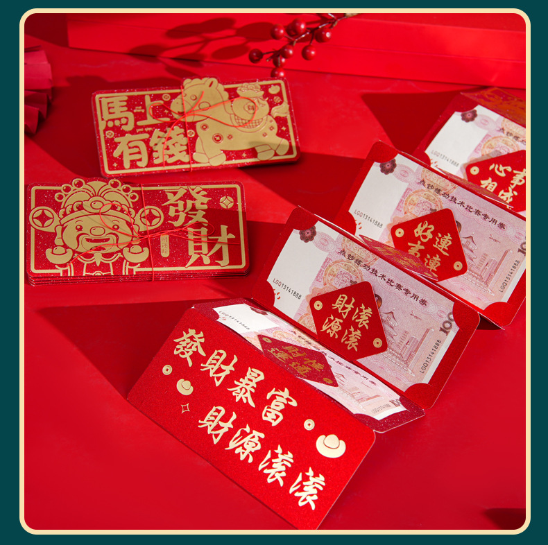 小红书同款折叠卡位红包个性创意马生肖立体卡通过新年红包批发