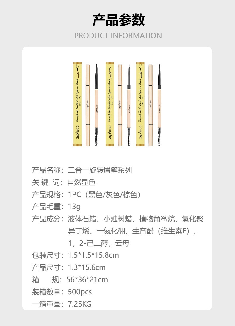 zephoco 二合一旋转眉笔 笔触流畅较少晕染打造自然立体细腻眉笔,批发价,价格:8,厂家直销,zephoco 二合一旋转眉笔 笔触流畅较少晕染打造自然立体细腻眉笔,免费拿样。
