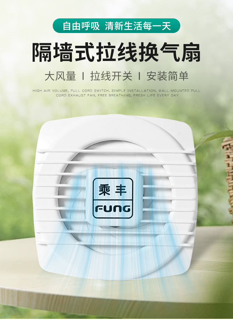 玻璃窗/隔墙式拉线换气扇家用排气通风设备抗老化排烟工业排风扇