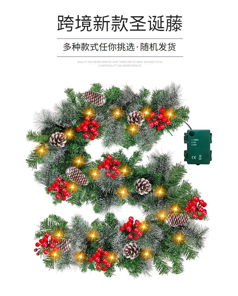 圣诞花环门挂180/270CM人造装饰品圣诞树藤条挂饰场景布置门