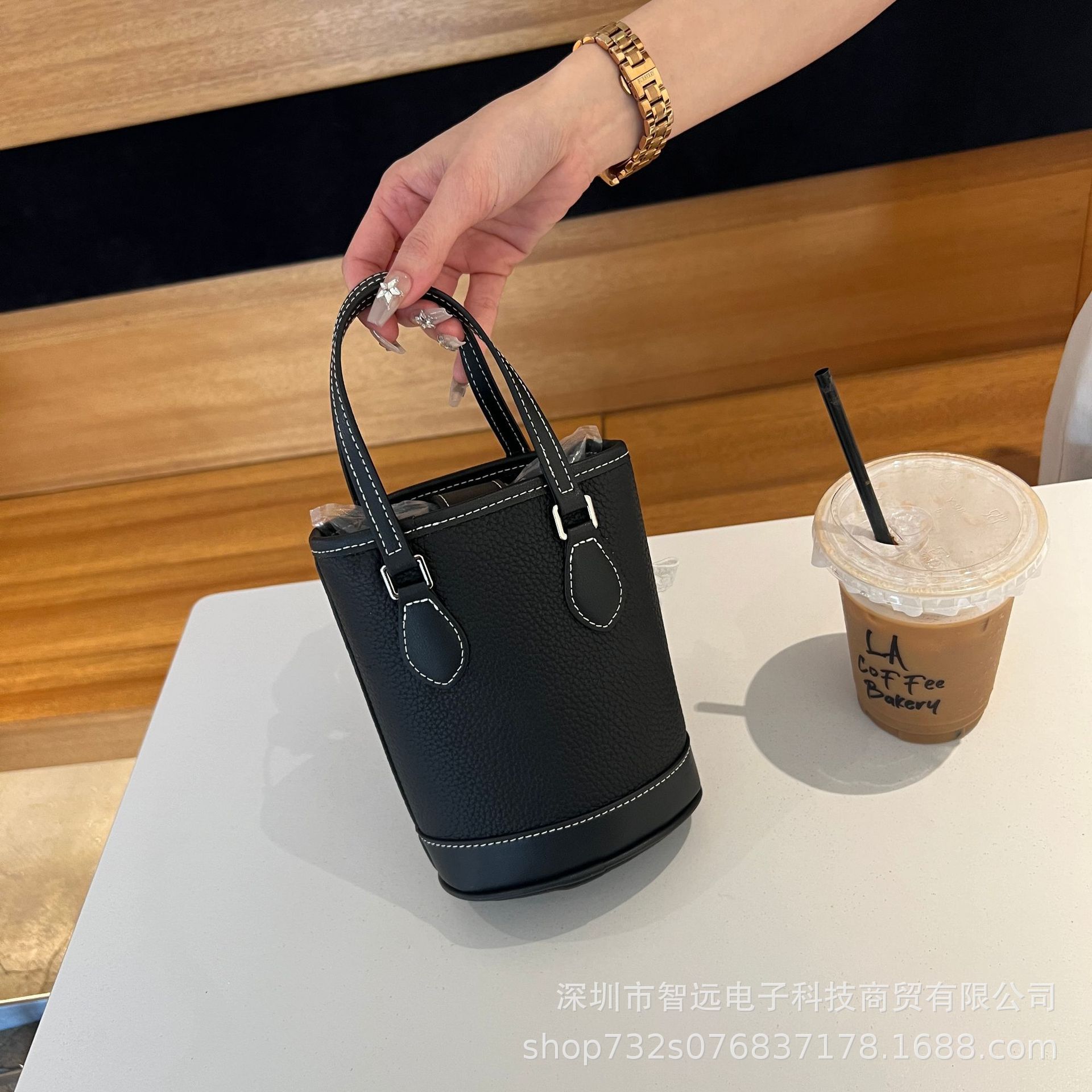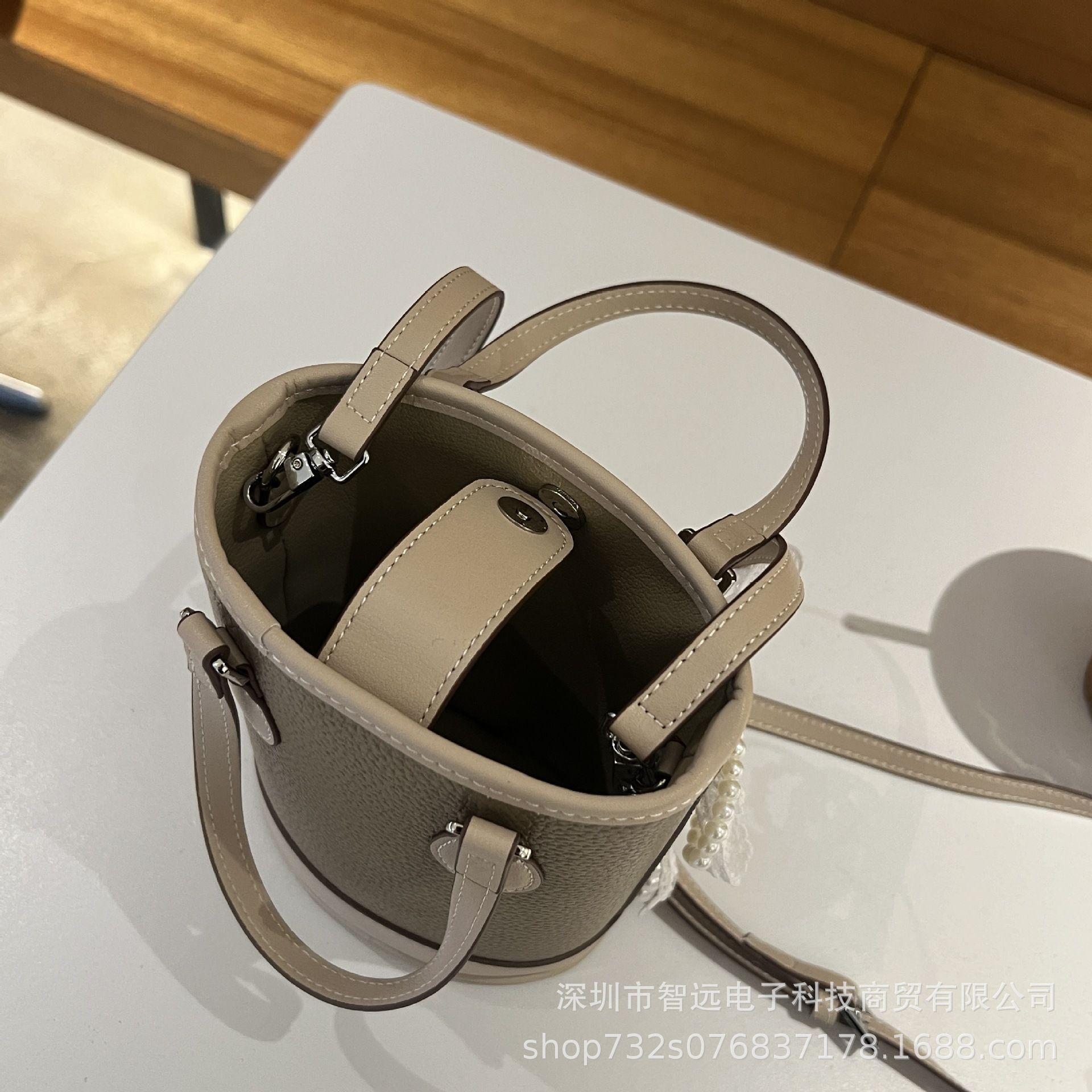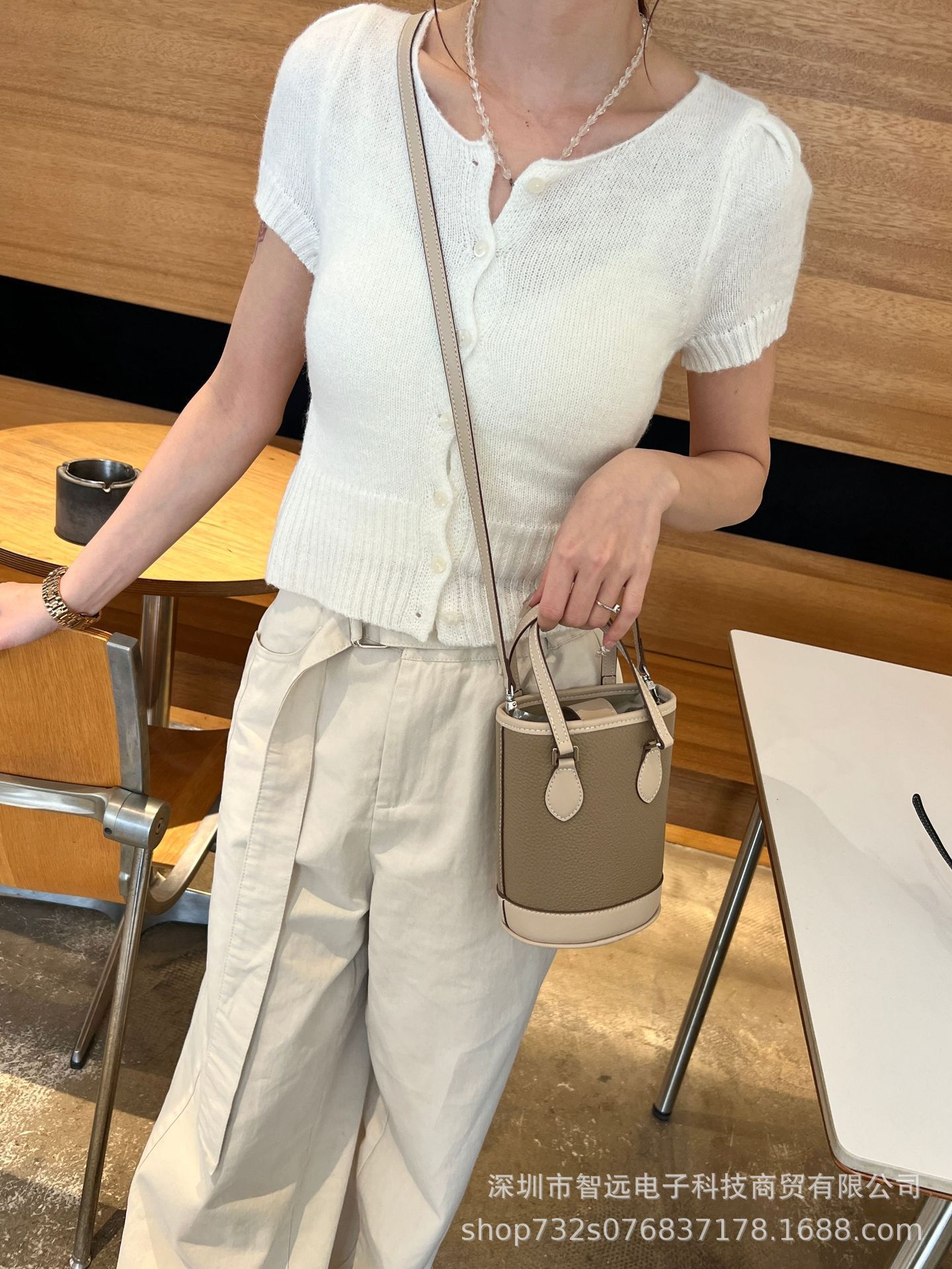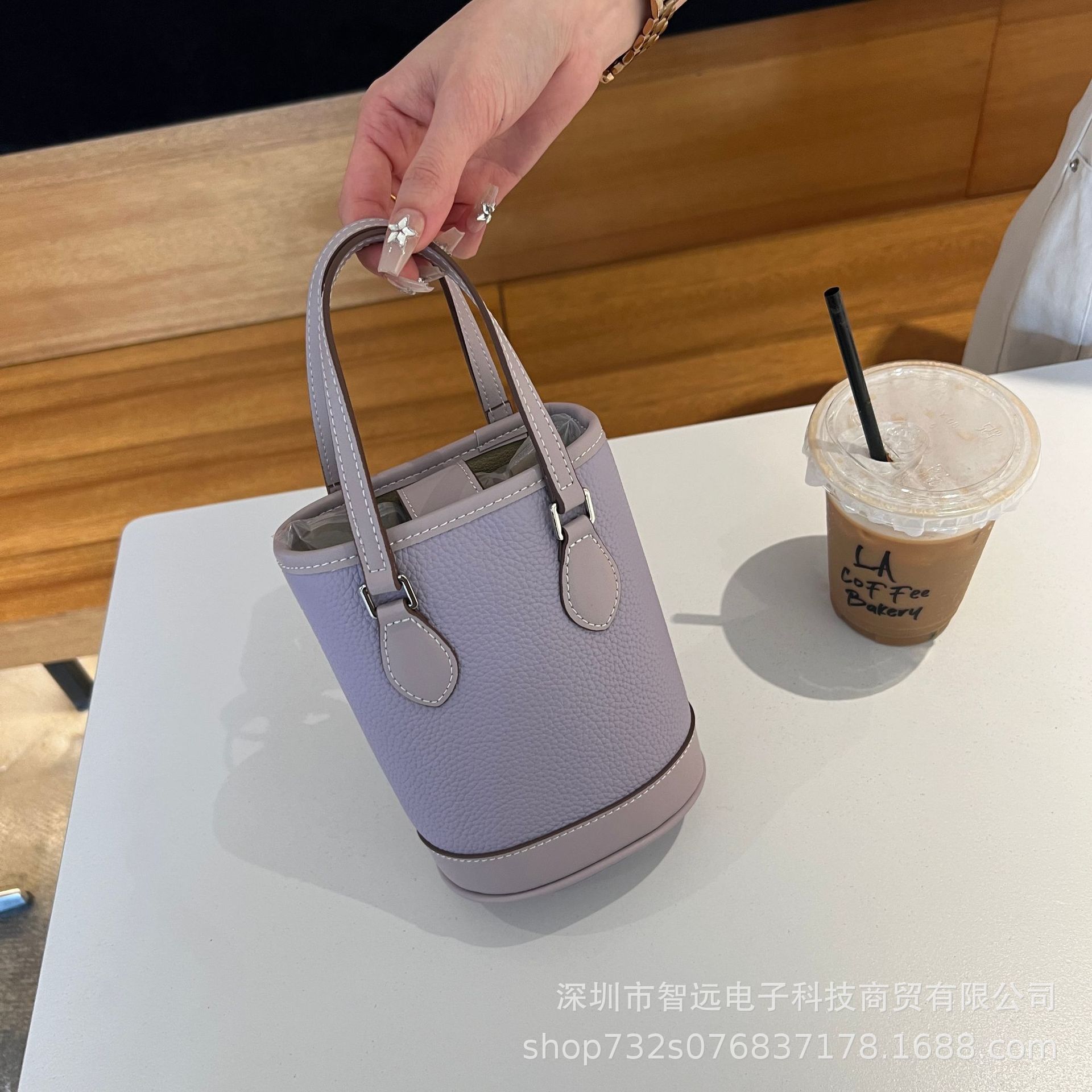 推荐理由:头层牛皮水桶包时尚撞色百搭水桶包迷你多功能单价斜挎手提小包女