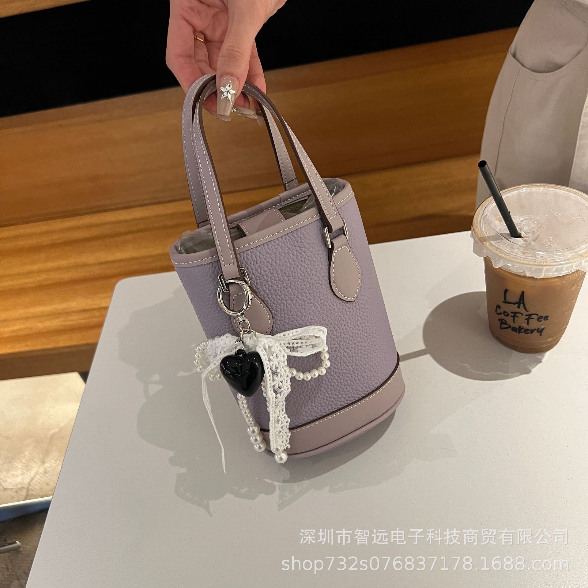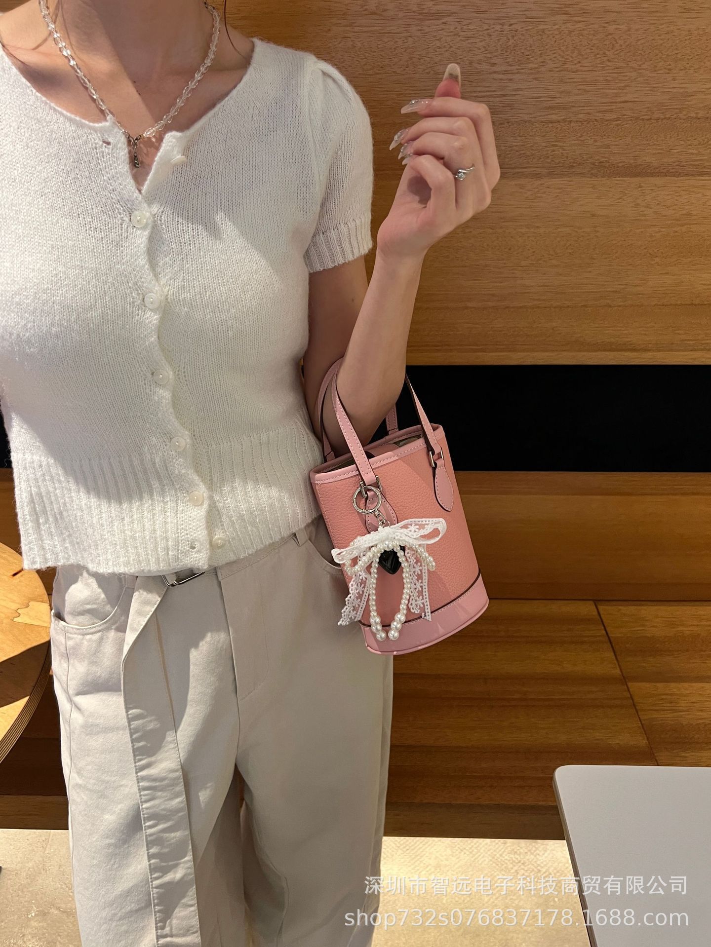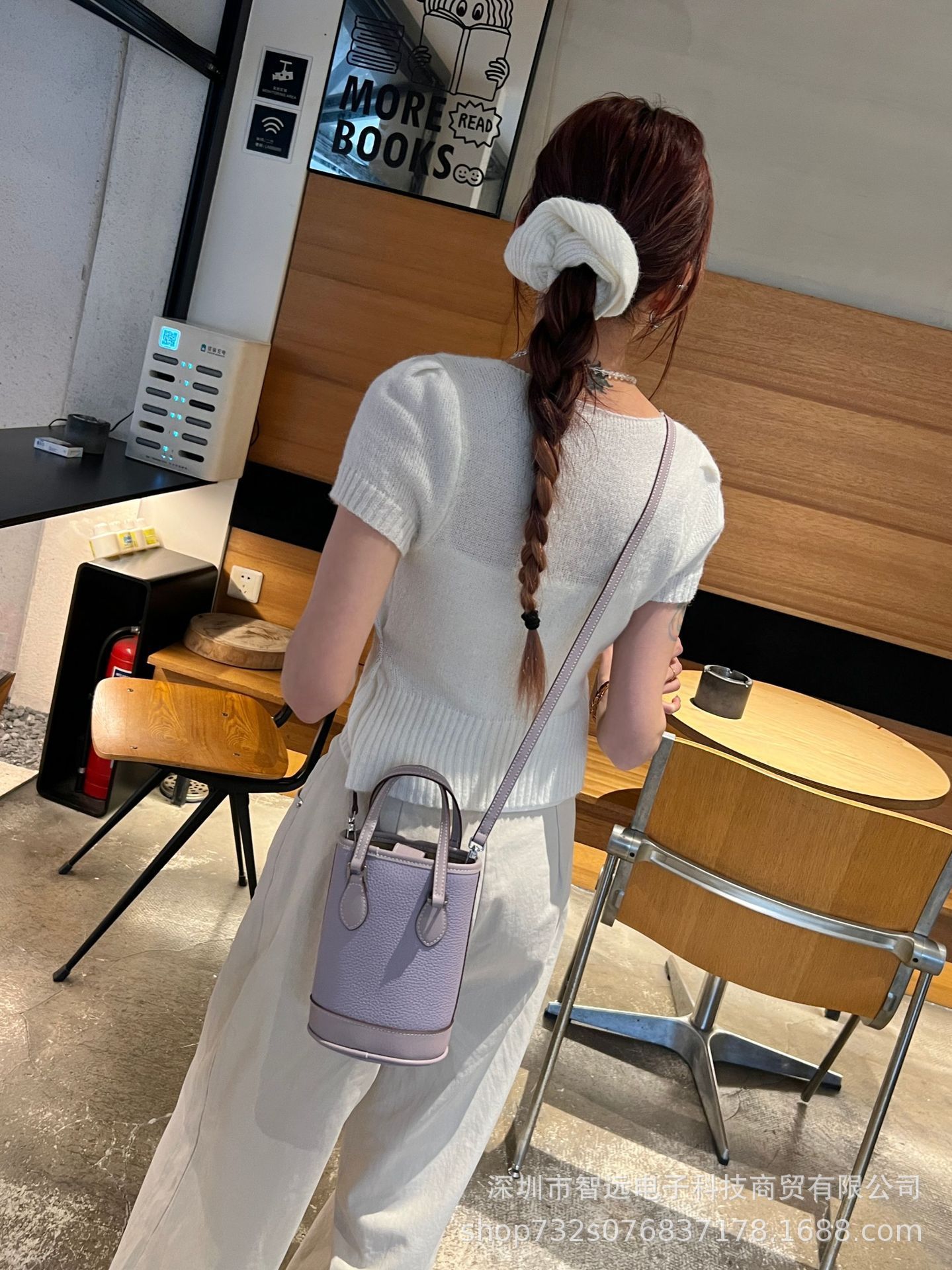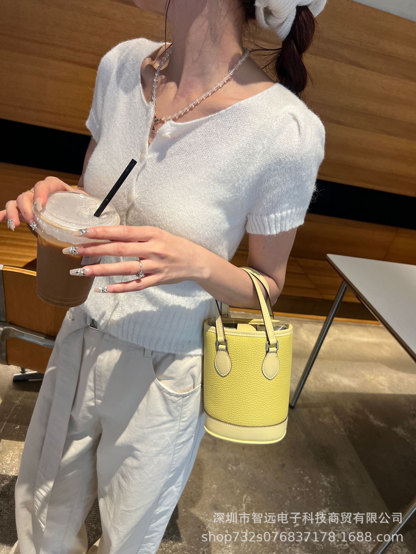 推荐理由:头层牛皮水桶包时尚撞色百搭水桶包迷你多功能单价斜挎手提小包女