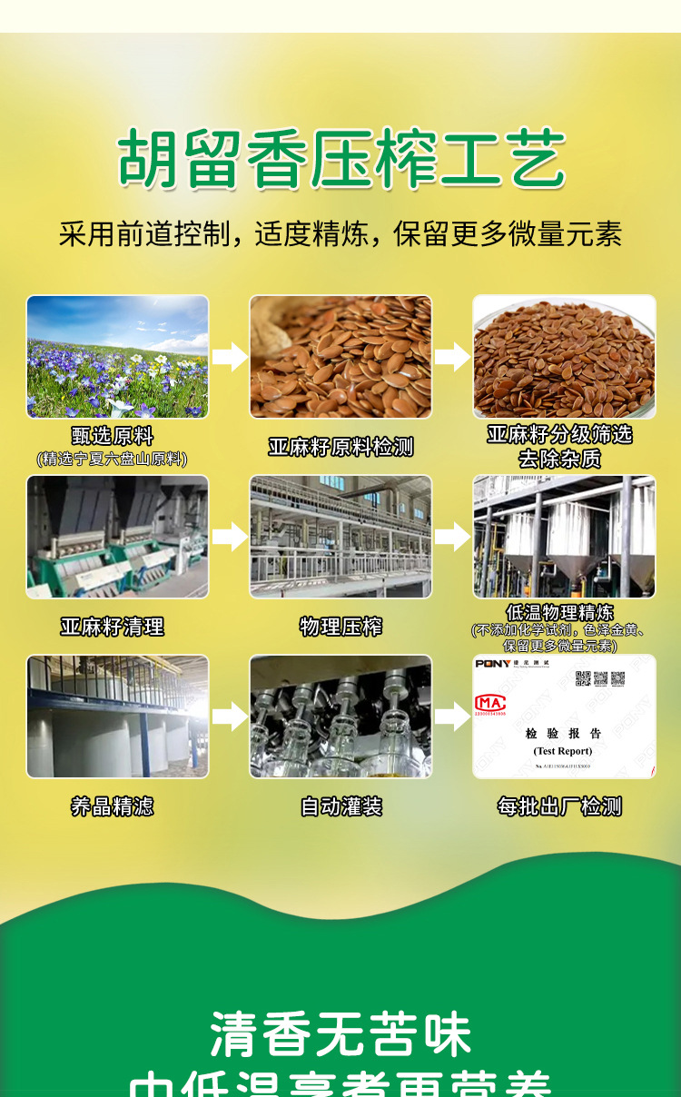 亚麻籽油物理压榨1升装冷榨胡麻油食用油宁夏特产非转基因亚麻酸