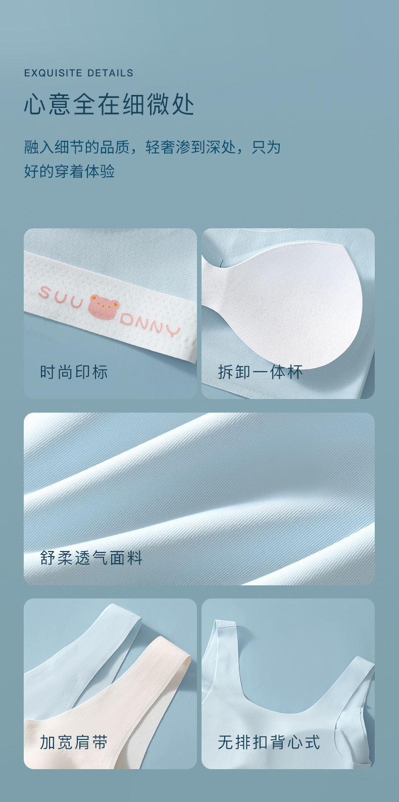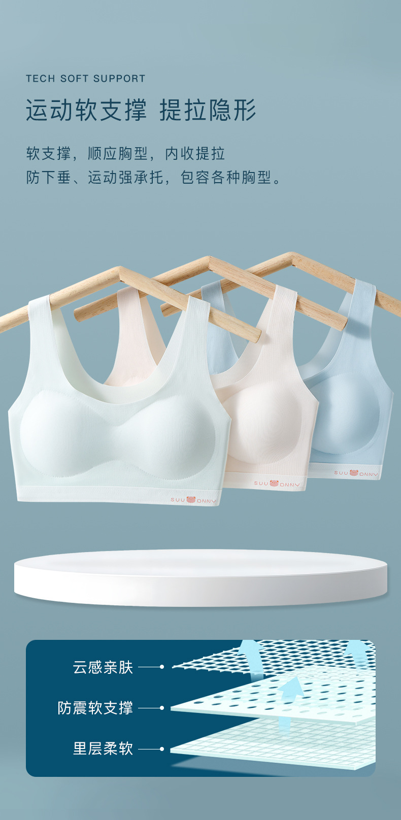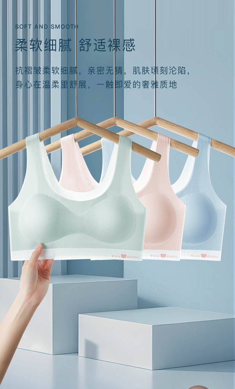 新款轻薄无痕少女内衣发育期少女内衣学生青春柔软透气运动文胸