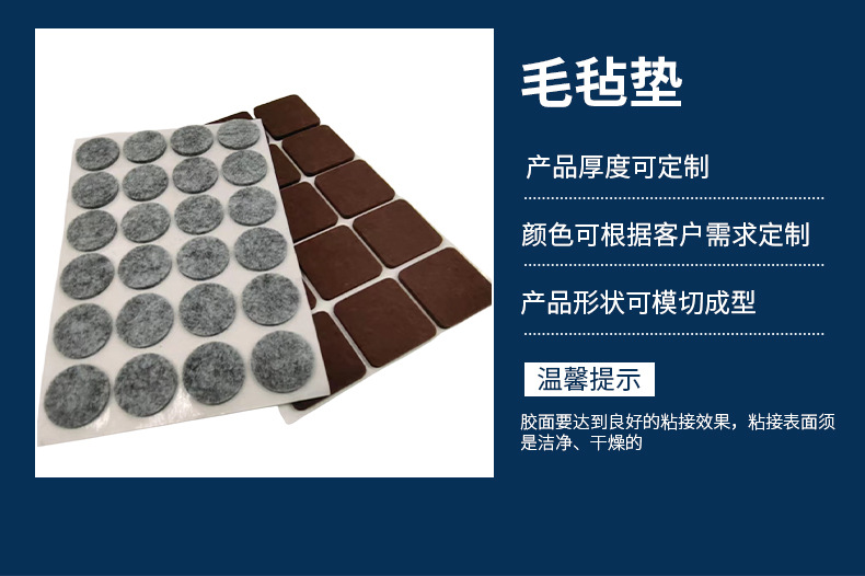 自粘绒布脚垫 消音降噪加硬绒布贴片高粘桌椅静音防滑毛毡垫片,批发价,价格:0.05,厂家直销,自粘绒布脚垫 消音降噪加硬绒布贴片高粘桌椅静音防滑毛毡垫片,免费拿样。