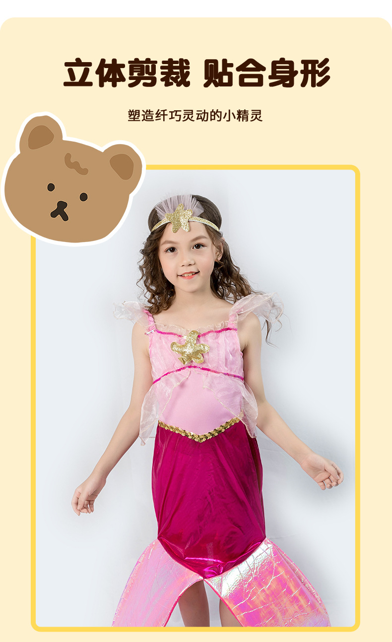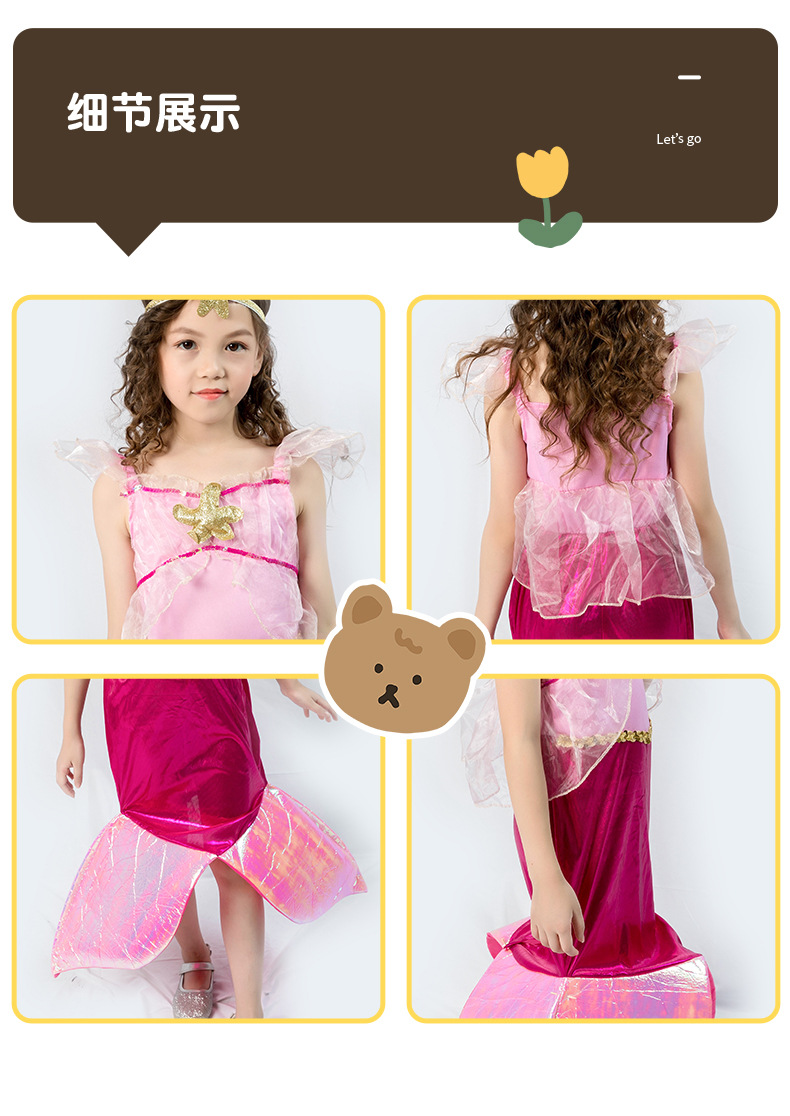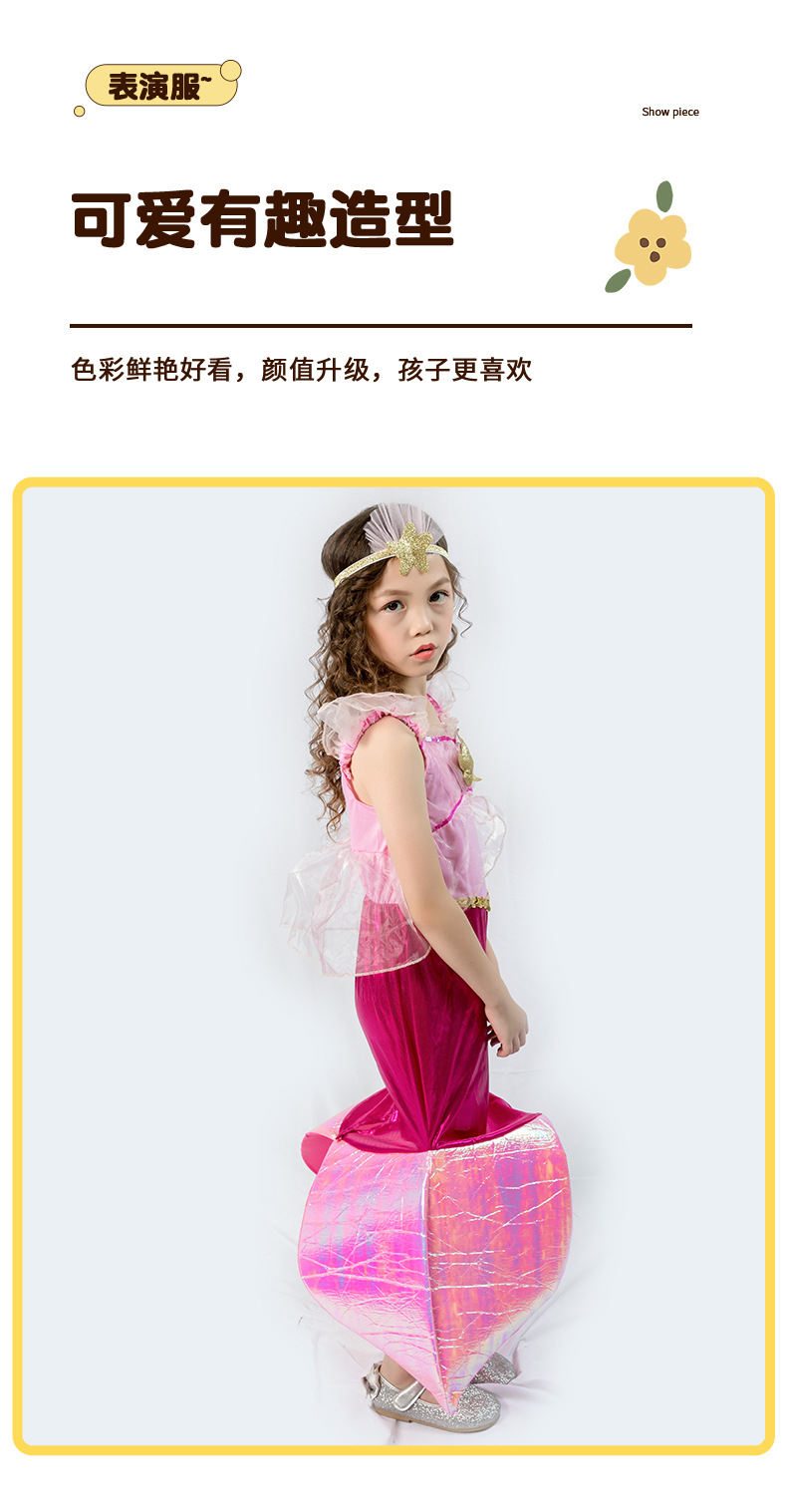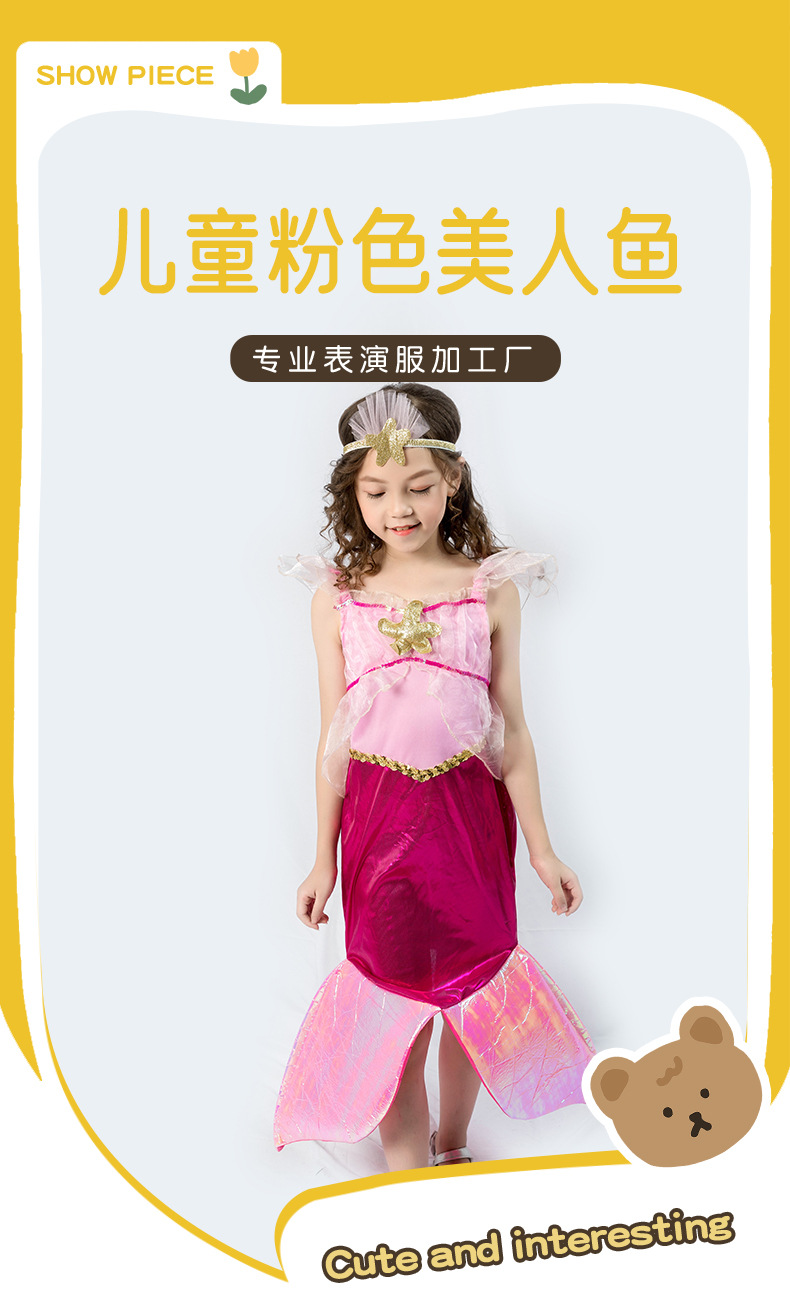跨境新款儿童粉色美人鱼演出服舞台表演服女童连衣裙cosplay裙子