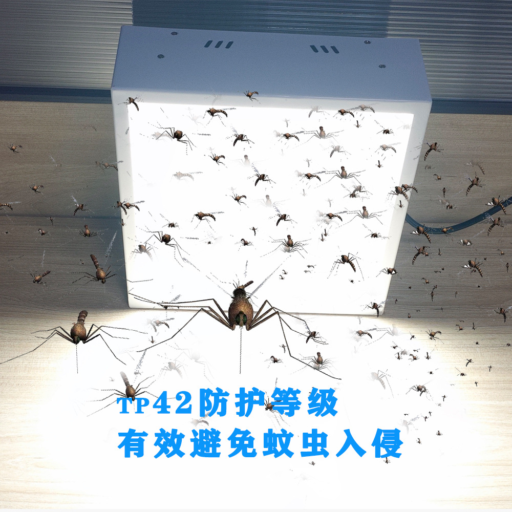 IP42防护等级,散热器件与灯具主体紧密贴合,散热通风孔与光源腔完全独立隔离,有效避免蚊虫入侵