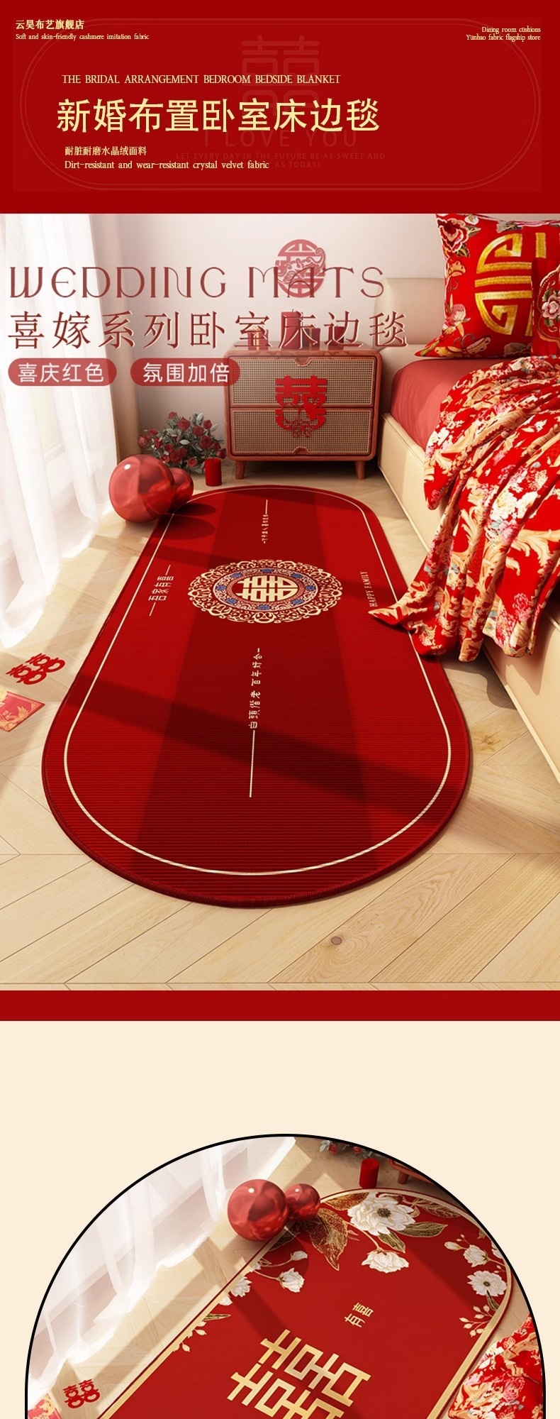 喜庆结婚红地毯卧室地垫床边毯婚房布置主卧房间新婚入户门喜字垫