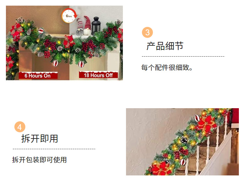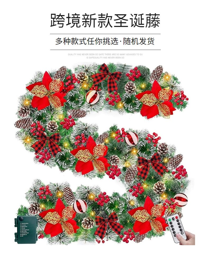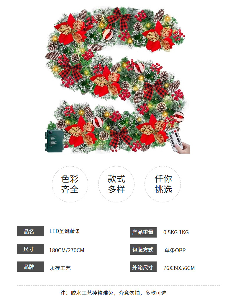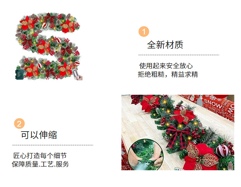圣诞花环门挂180/270CM人造装饰品圣诞树藤条挂饰场景布置门