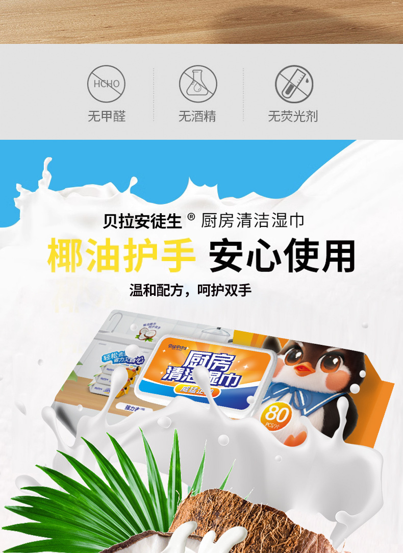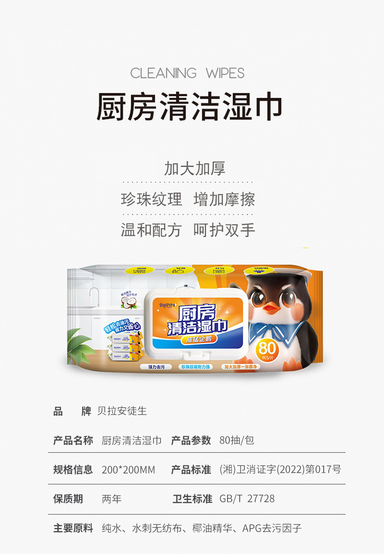 新款威猛企鹅巨无霸厨房清洁油污湿巾加大加厚外贸批发代发包邮