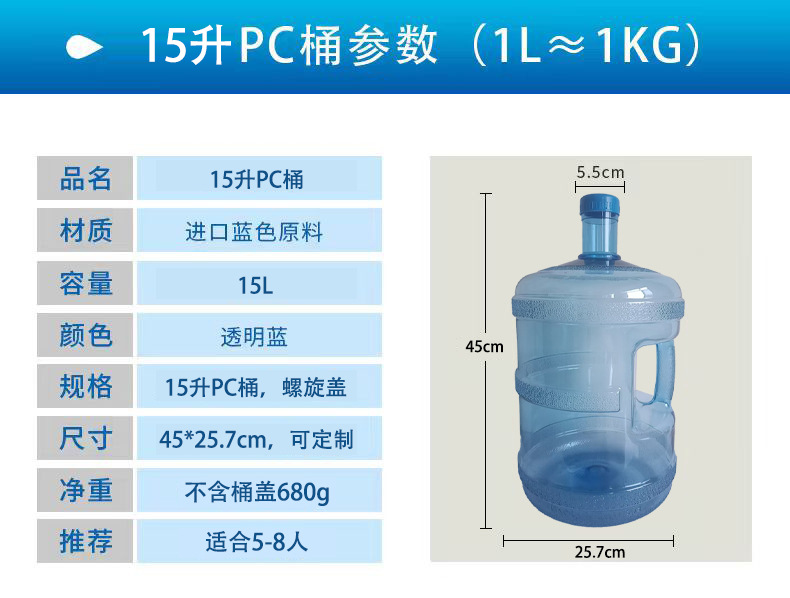加厚饮水机桶矿泉水纯净水桶pc大桶饮水装水桶手提家用15升空桶