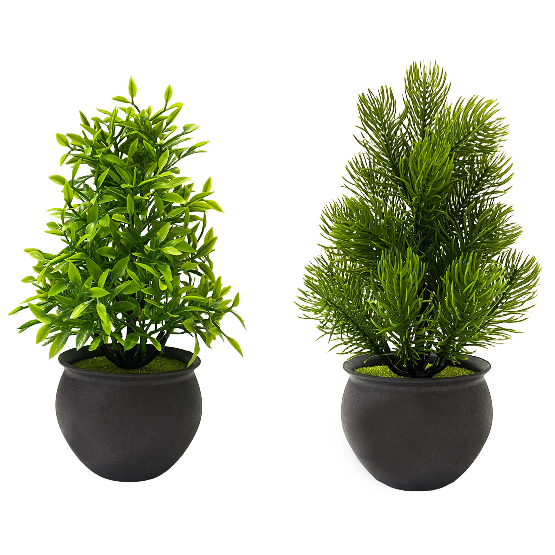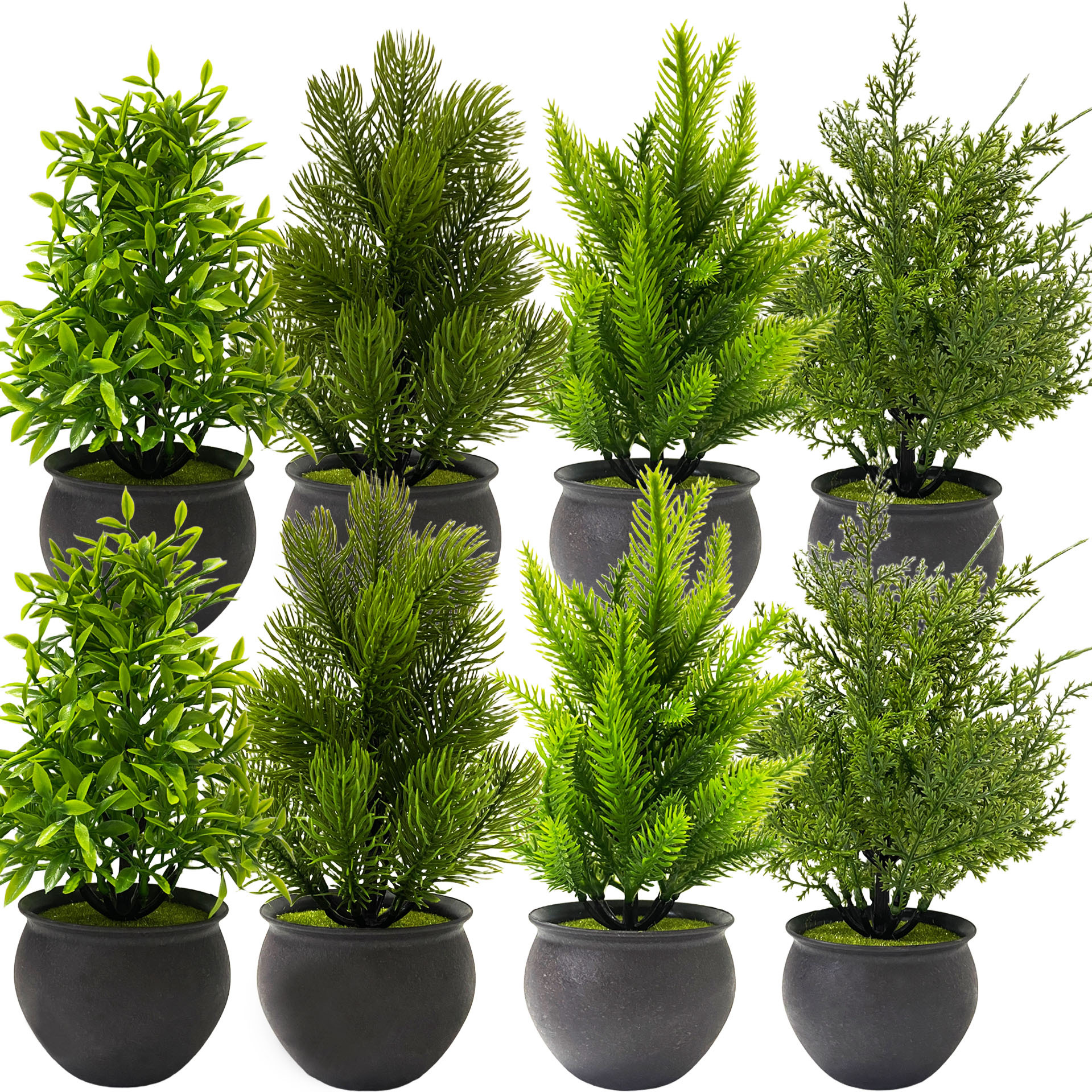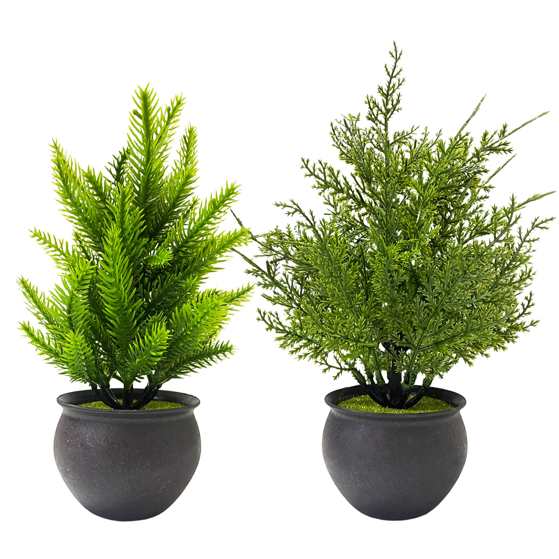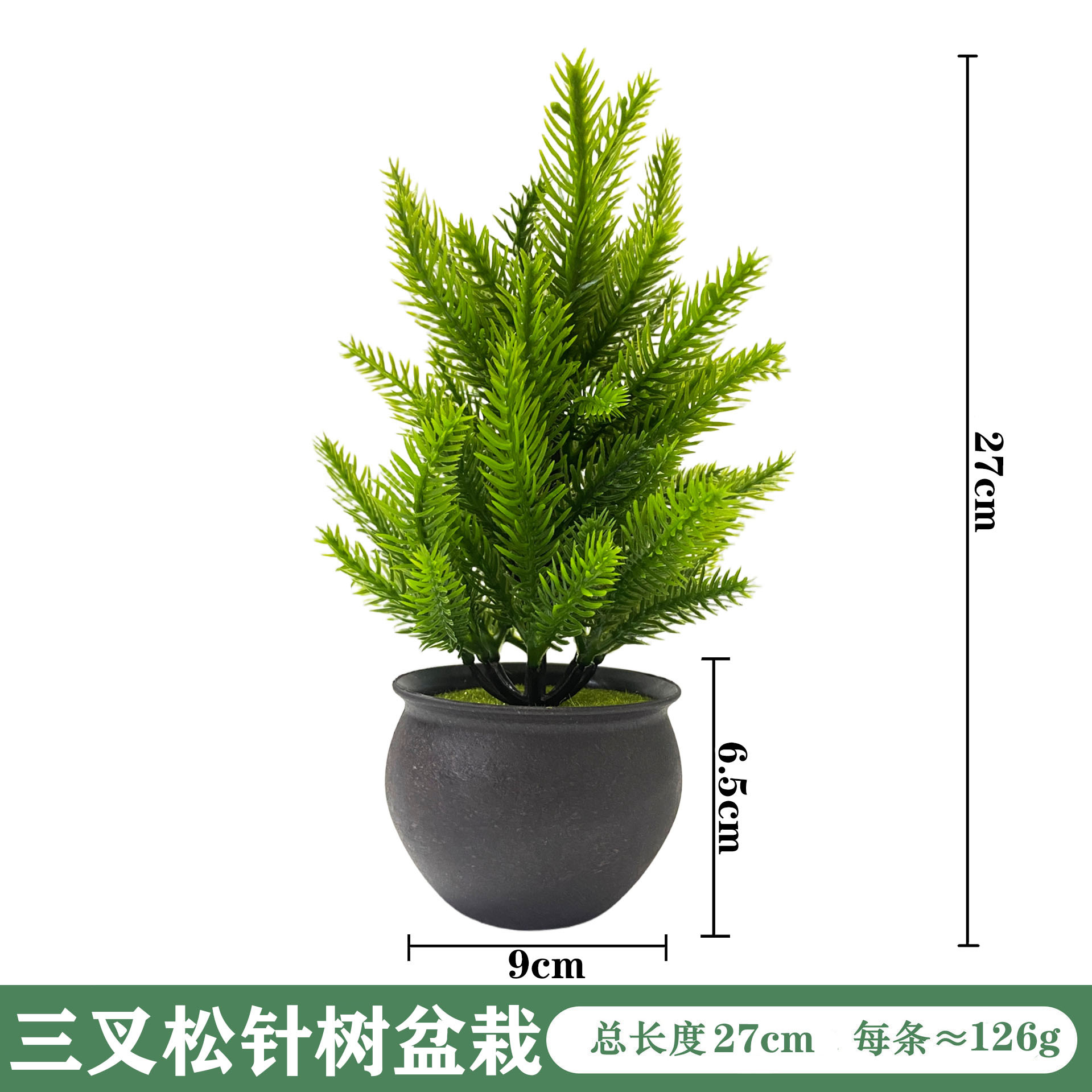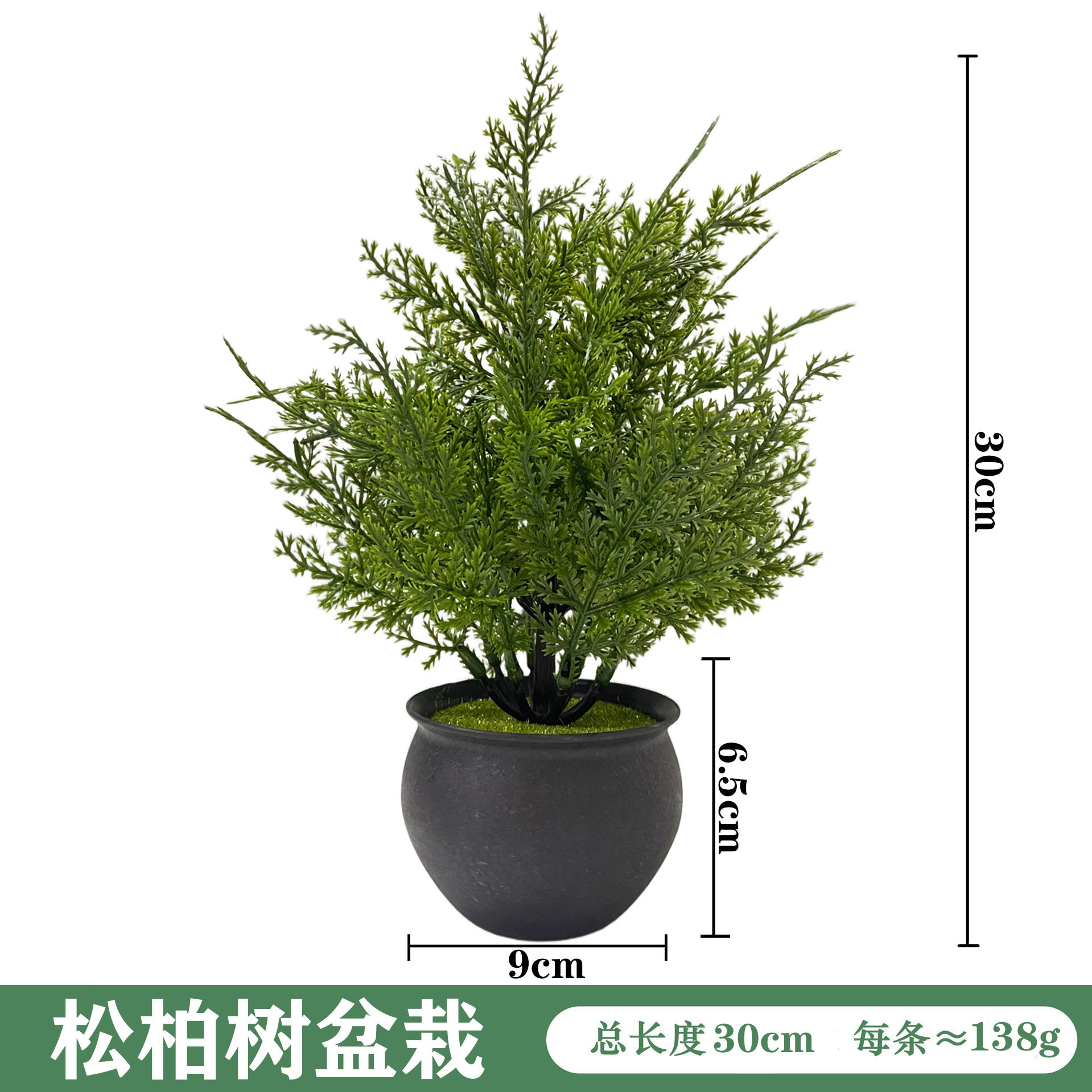 跨境仿真圣诞地插双绿松柏树松针松草盆景人造松柏叶绿化装饰摆件