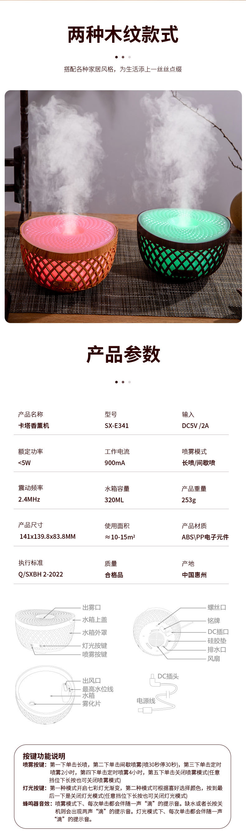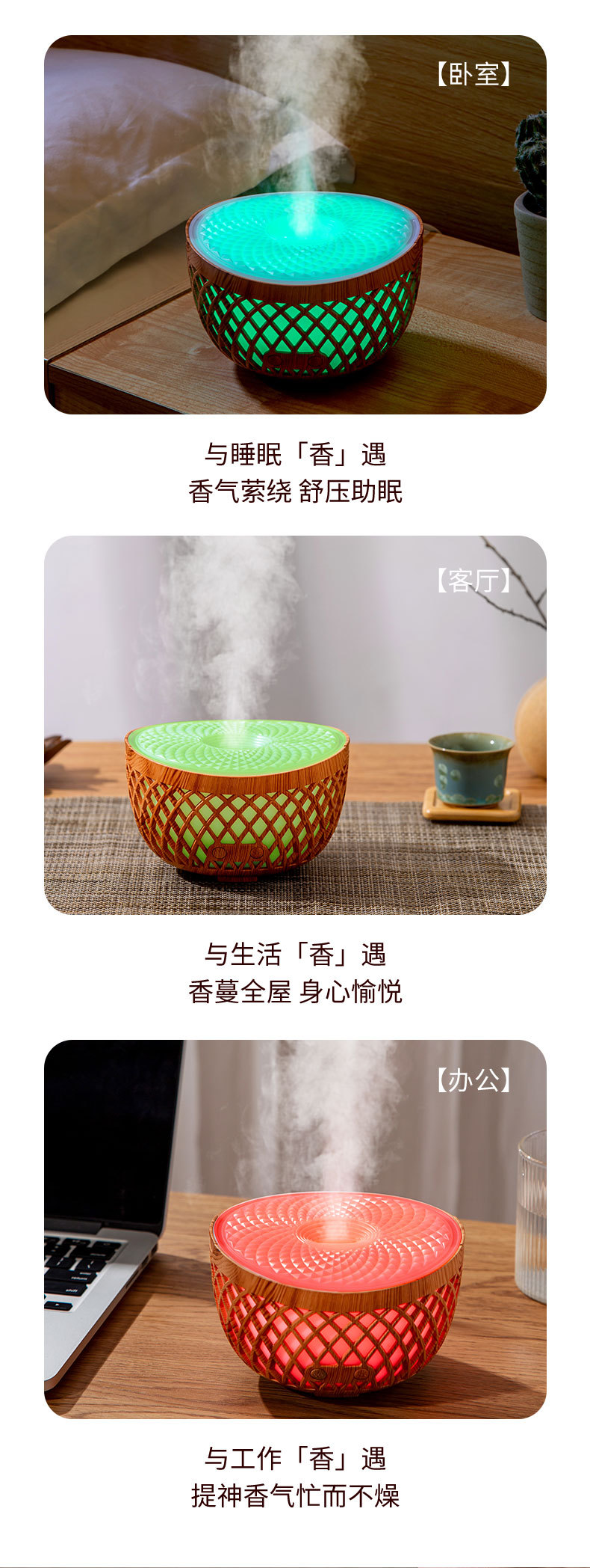 卡塔香薰机氛围光小夜灯居家办公静音精油香薰加湿器香氛氛围照明