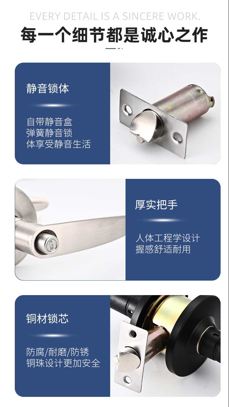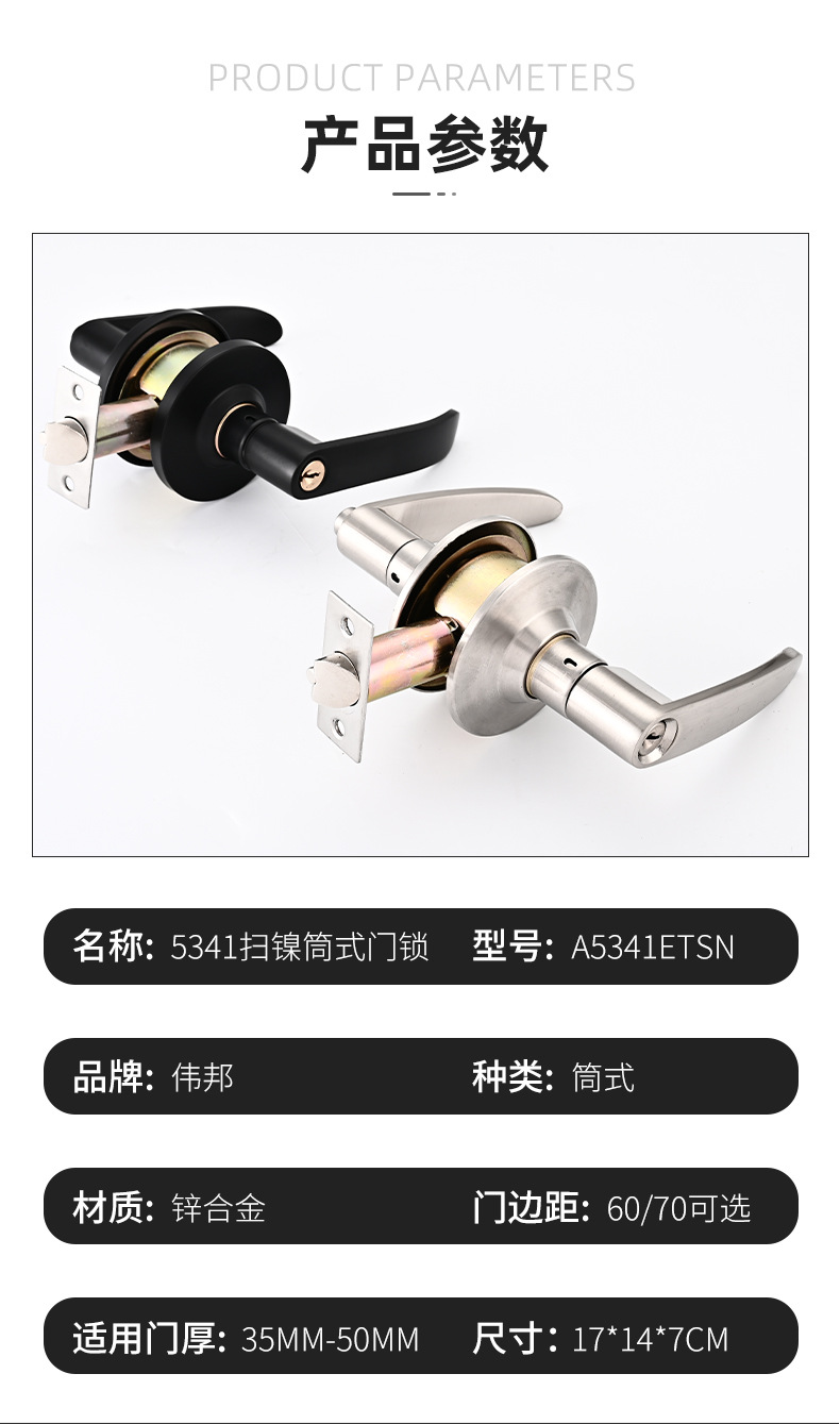 扫镍筒式门锁球形房锁室内房门铝合金筒式执手锁左开右开锌合金锁