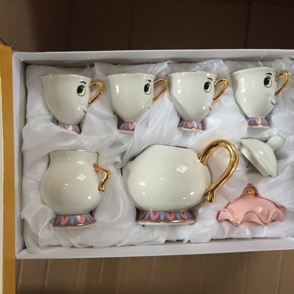 美女马克杯野兽茶壶陶瓷镀金茶煲水杯太太阿奇杯六件欧式耐热现货