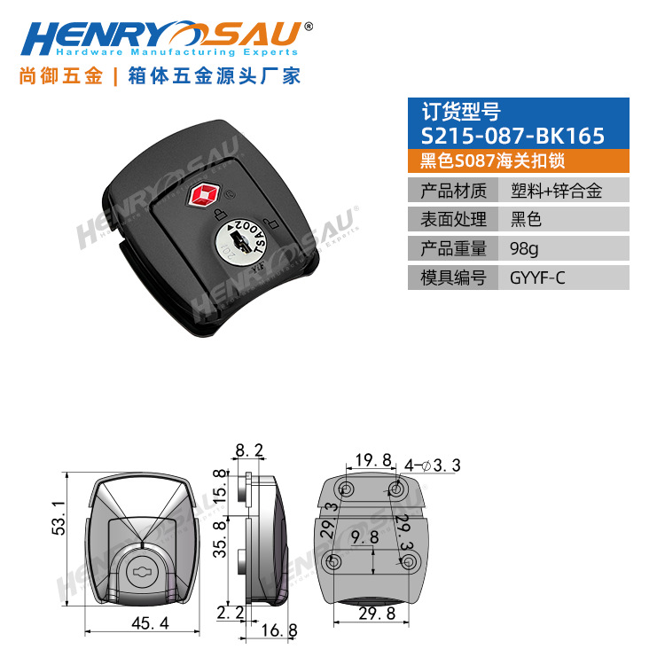 拉杆箱行李箱密码锁固定箱包锁海关锁旅行箱包配件S087海关扣锁