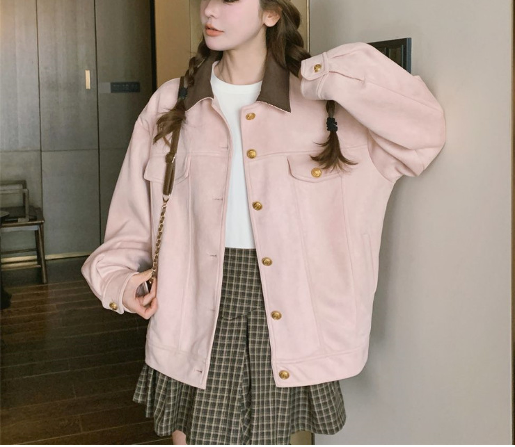 春秋2025新款粉色麂皮绒工装外套女甜美小个子学院风休闲夹克上衣,批发价,价格:73,厂家直销,春秋2025新款粉色麂皮绒工装外套女甜美小个子学院风休闲夹克上衣,免费拿样。