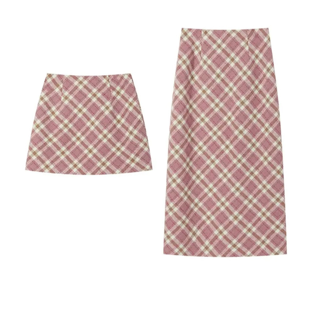 毛呢半身裙女秋冬新款设计感修身中长款格子鱼尾包臀裙子其它绣花