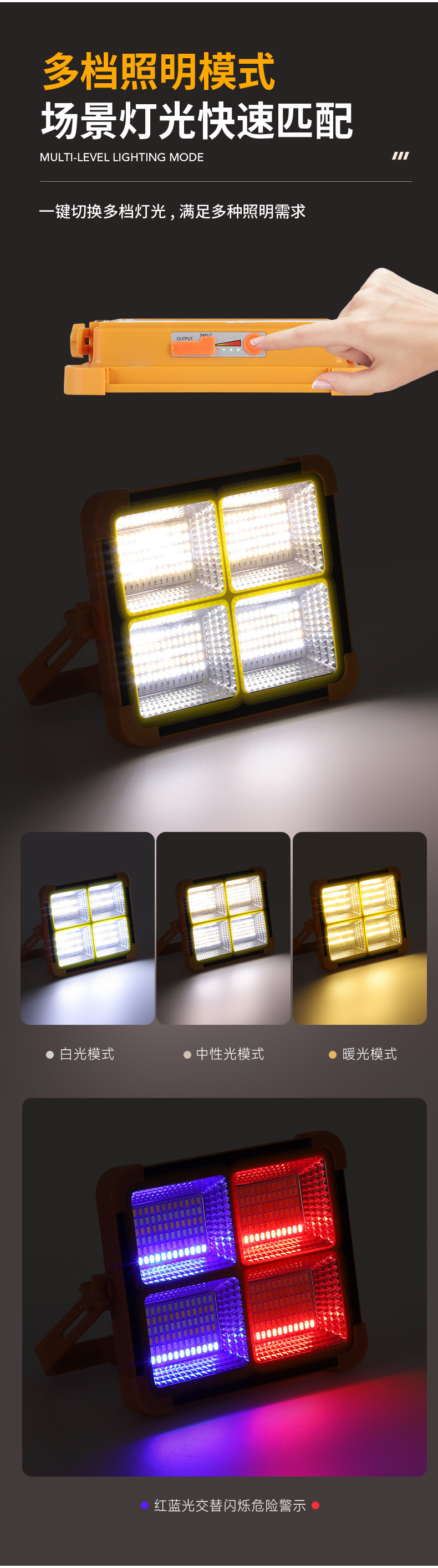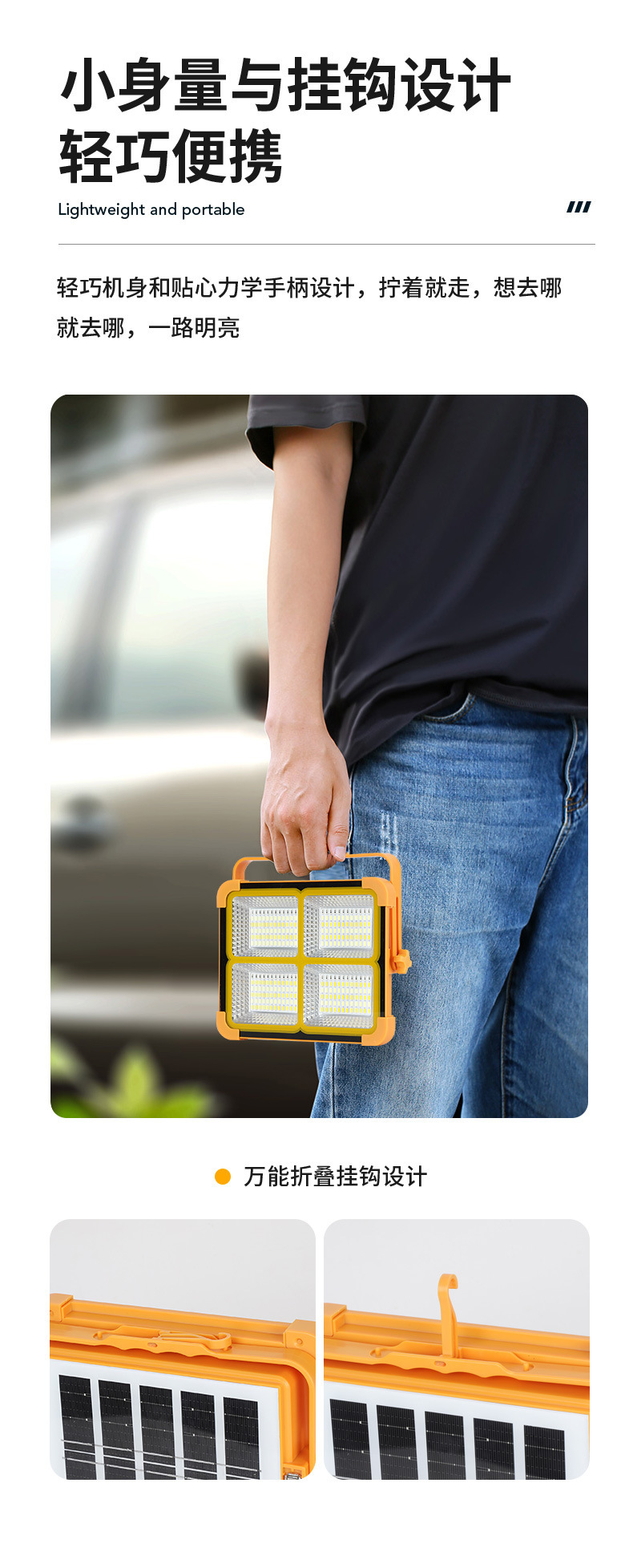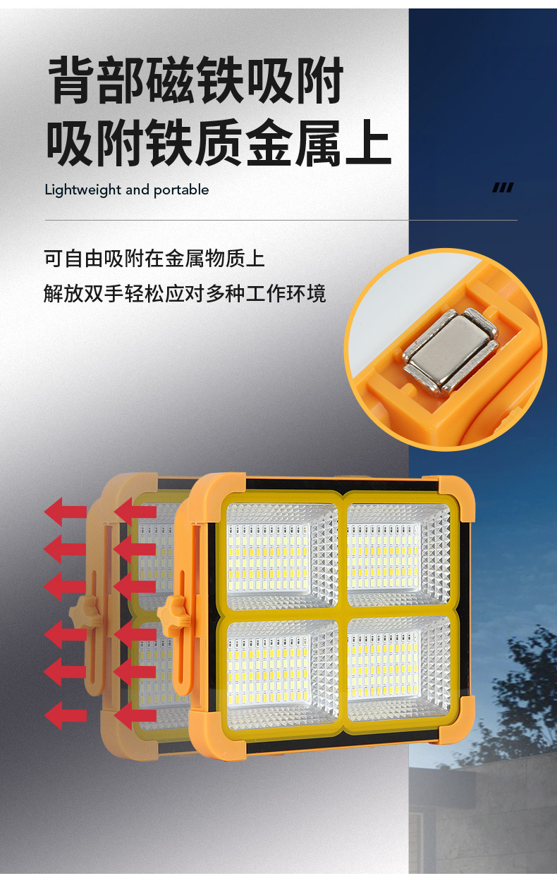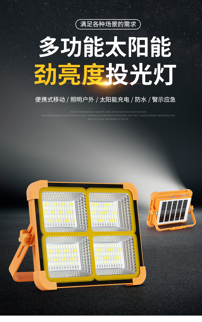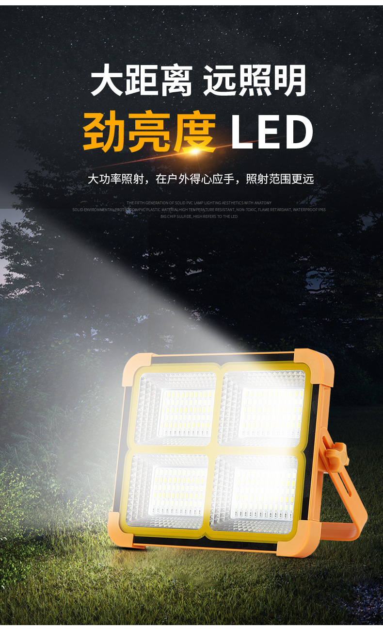 跨境太阳能投光灯USB户外爆亮防水手提应急露营灯充电宝LED照明灯