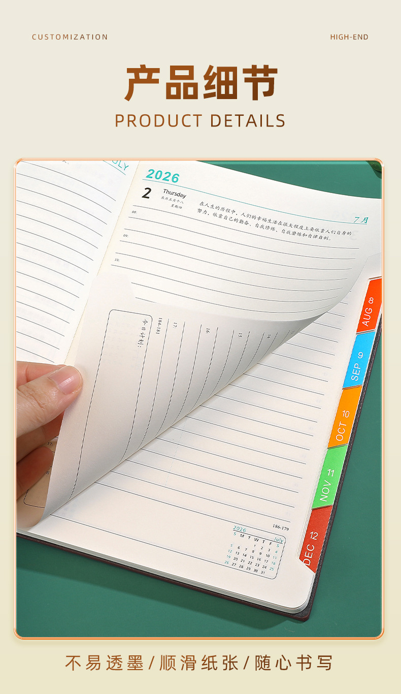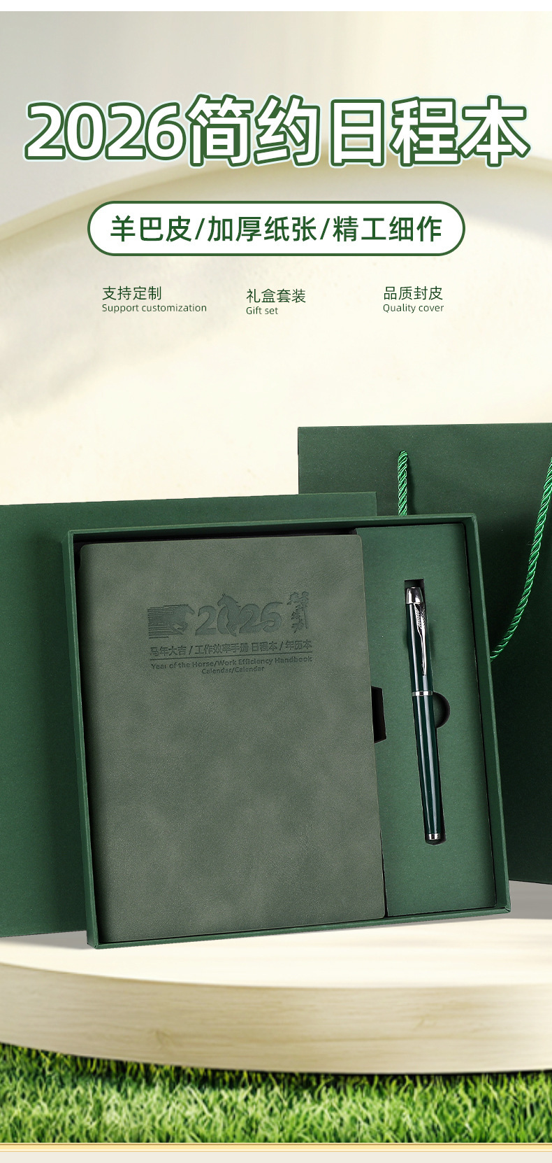 日程本2026新款效率手册年历本羊巴皮笔记本定制logo每日计划本子