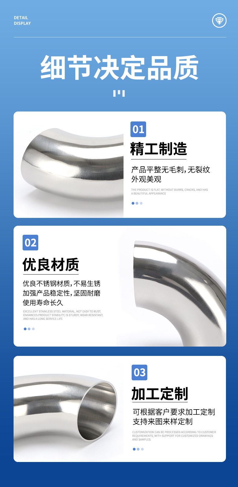 定制 90度焊接弯头304不锈钢卫生级内外镜面抛光冲压亮光工业弯头,批发价,价格:4.5,厂家直销,定制 90度焊接弯头304不锈钢卫生级内外镜面抛光冲压亮光工业弯头,免费拿样。