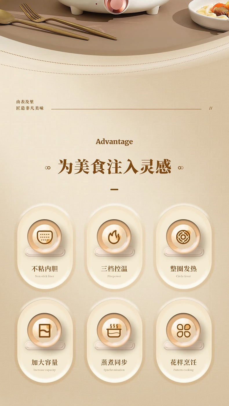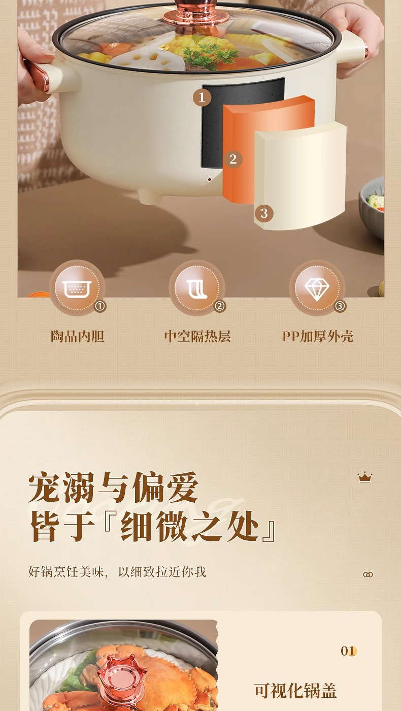 推荐理由:加热高效迅猛:搭载大功率发热盘(普遍1800W-2100W),部分采用专利浮动双热盘技术,实现立体加热,1升常温水最快4分多钟即可沸腾,中途加水复沸迅速,无需长时间等待。部分机型支持多档火力调节及左右