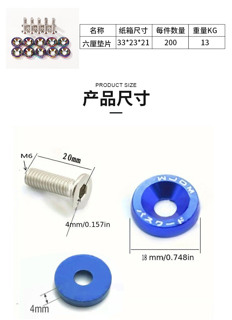 JDM汽车改装垫片螺丝M6电瓶护板垫圈挡泥板车牌架前后杠车身通用,批发价,价格:3.2,厂家直销,JDM汽车改装垫片螺丝M6电瓶护板垫圈挡泥板车牌架前后杠车身通用,免费拿样。