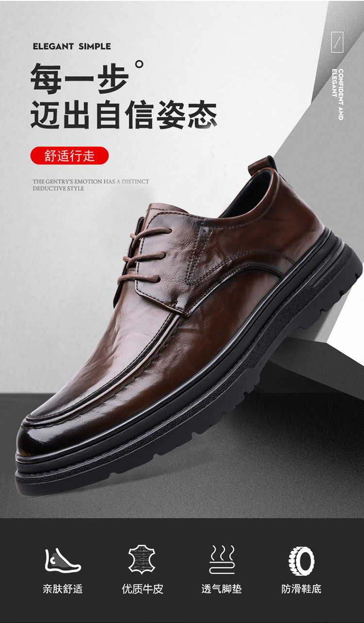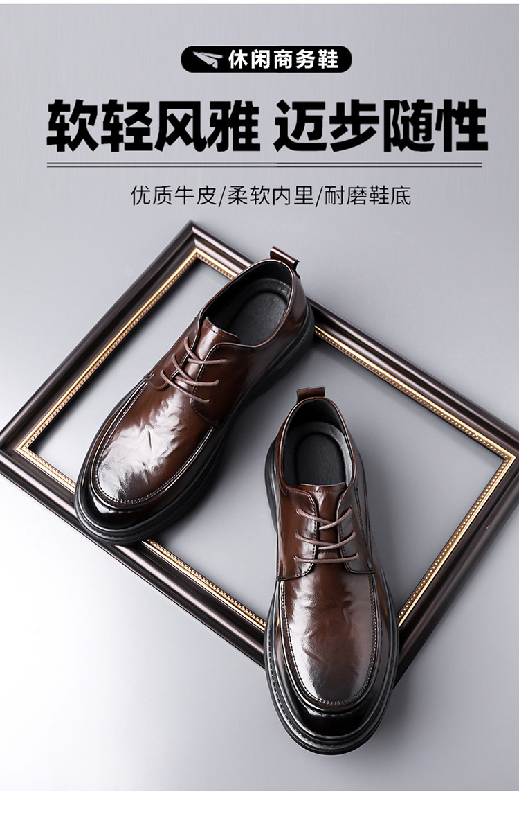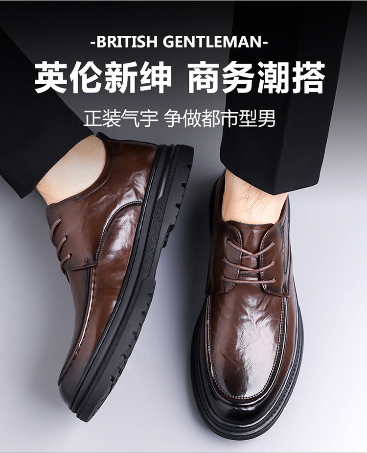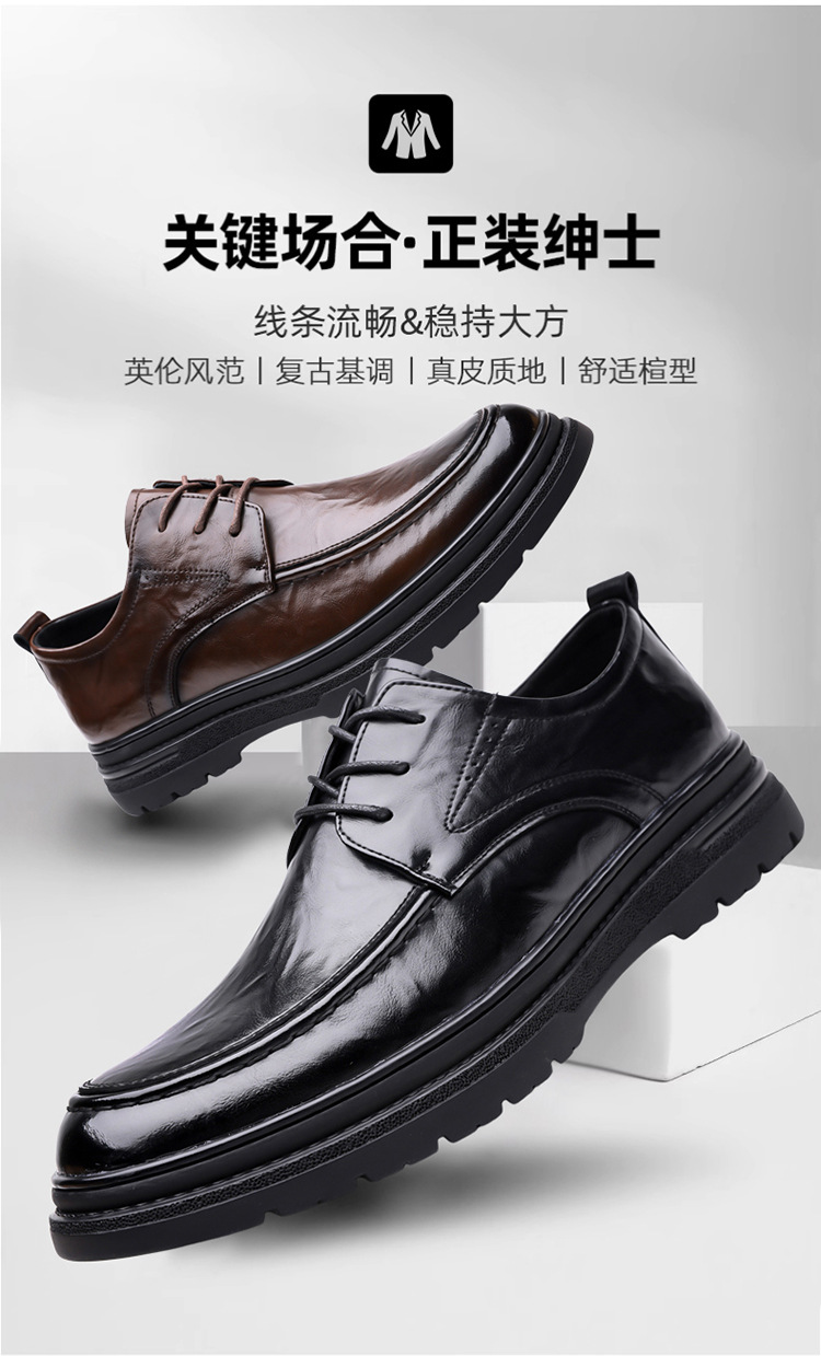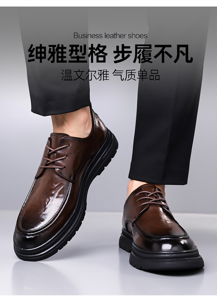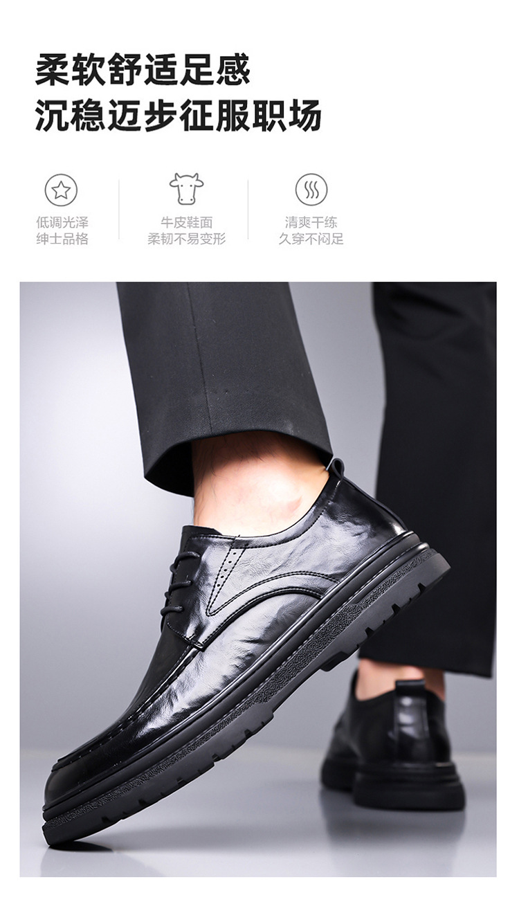 秋冬新款皮鞋男透气英伦商务休闲西装手抓纹厚底黑皮鞋男新郎结婚