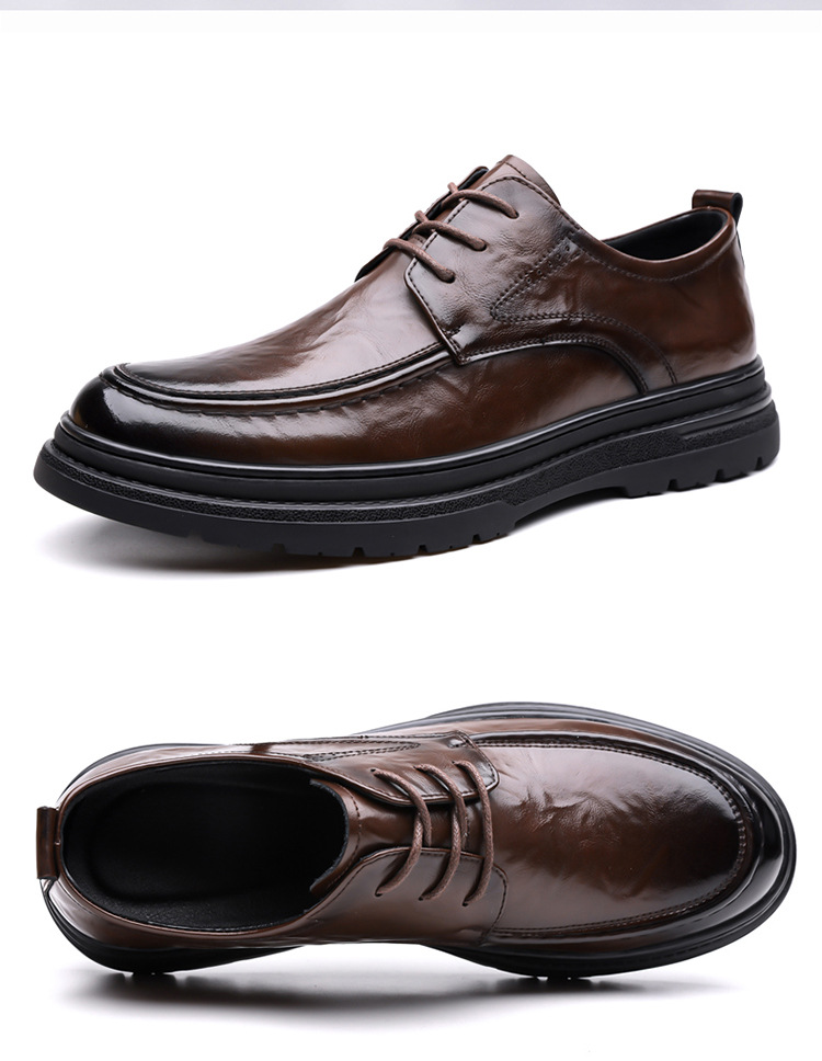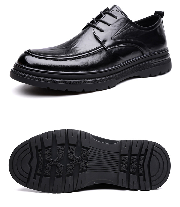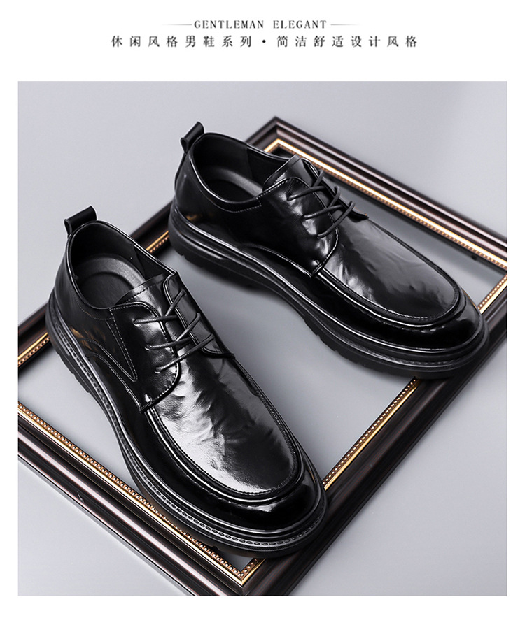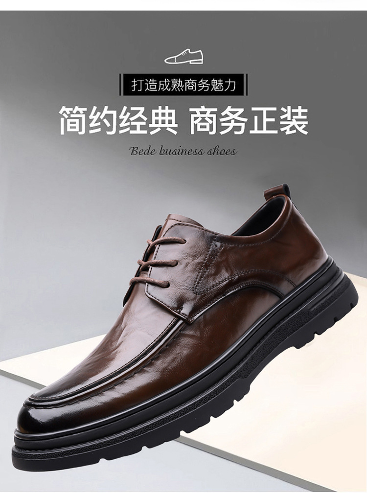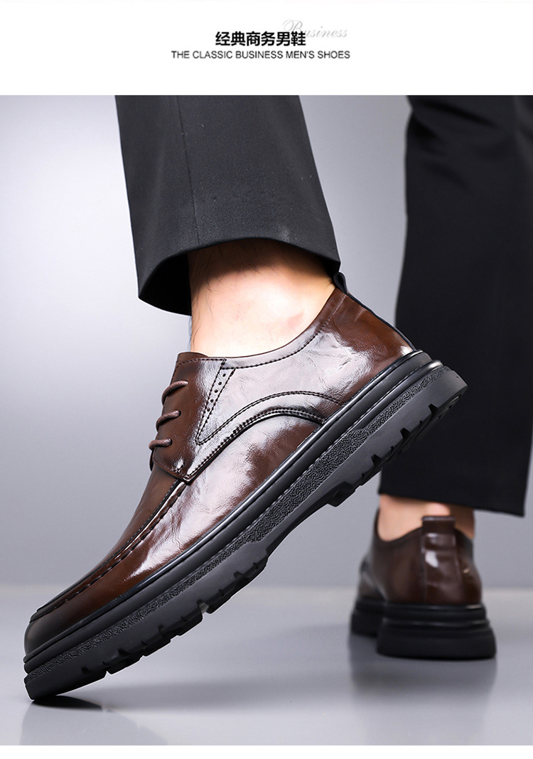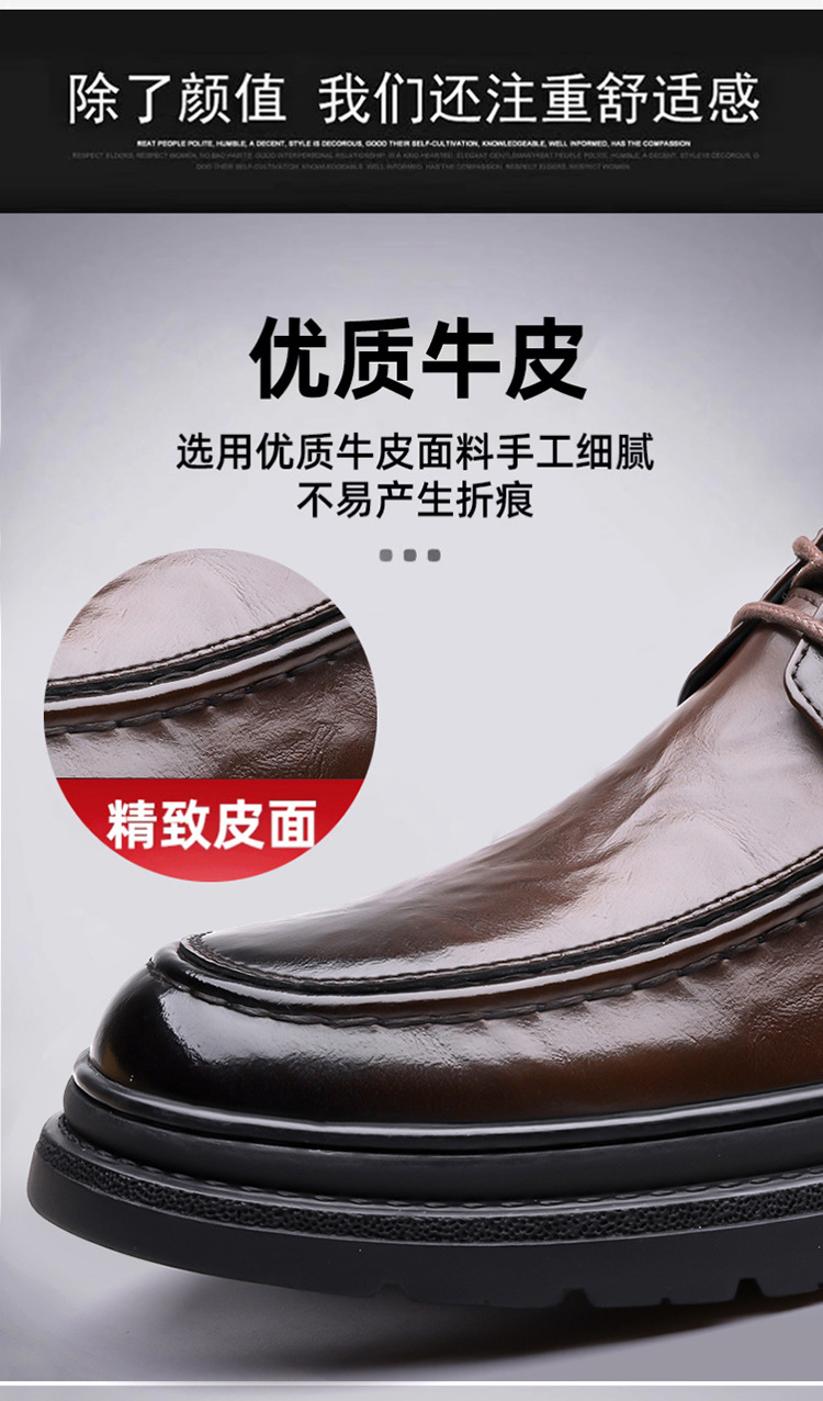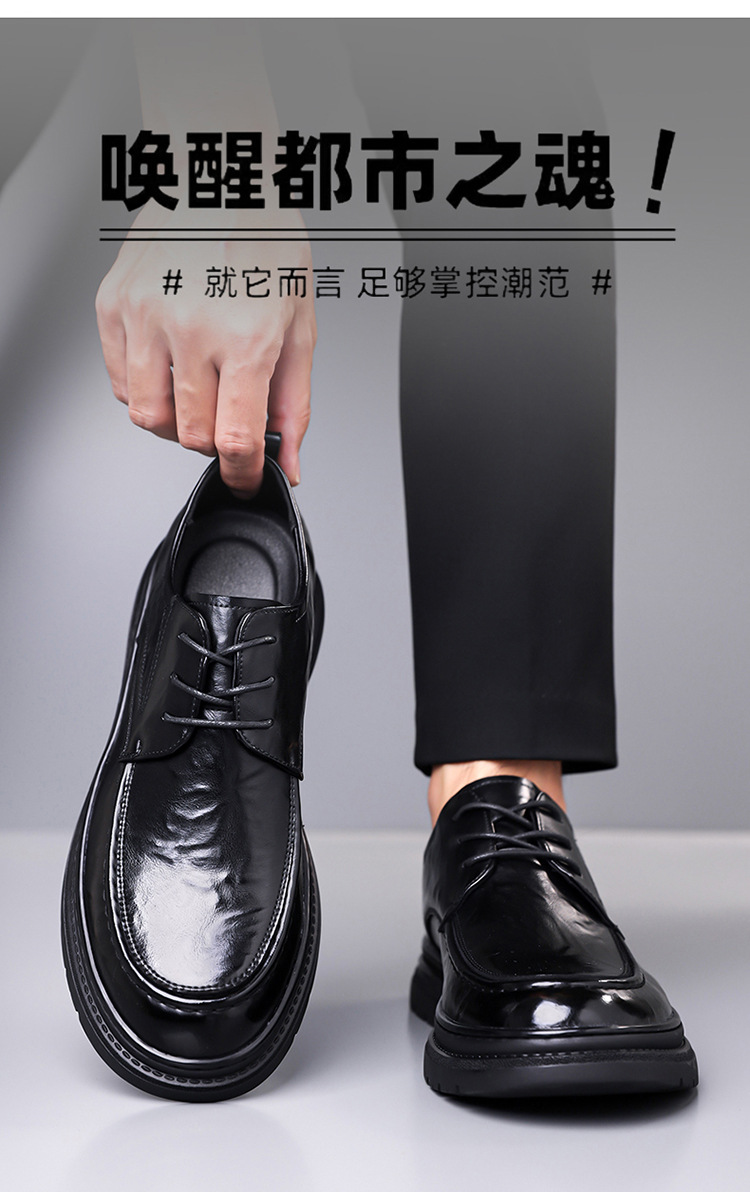 秋冬新款皮鞋男透气英伦商务休闲西装手抓纹厚底黑皮鞋男新郎结婚