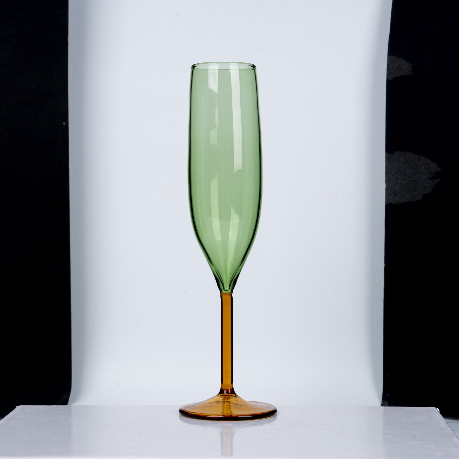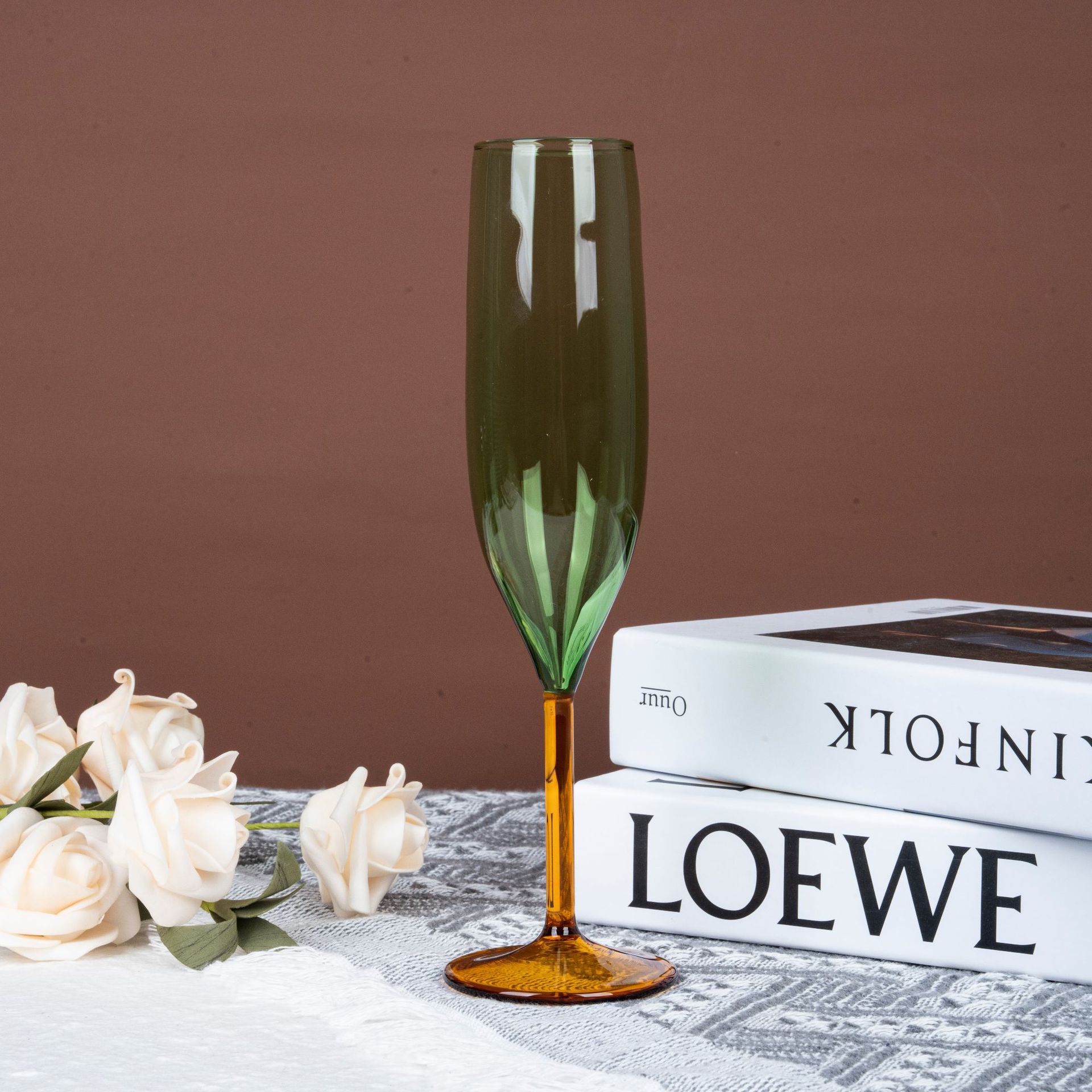 】现代简约彩色高脚香槟杯琥珀底座浅绿杯身家用甜品杯酒杯