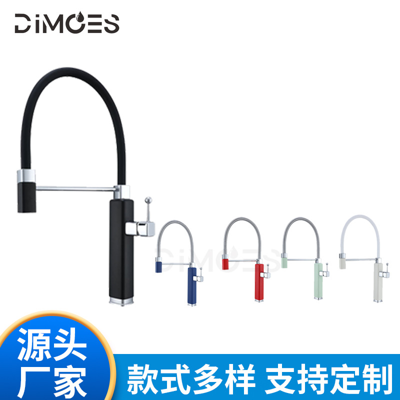 304不锈钢厨房龙头冷热洗菜盆硅胶管弹簧管支架抽拉式厨房水龙头