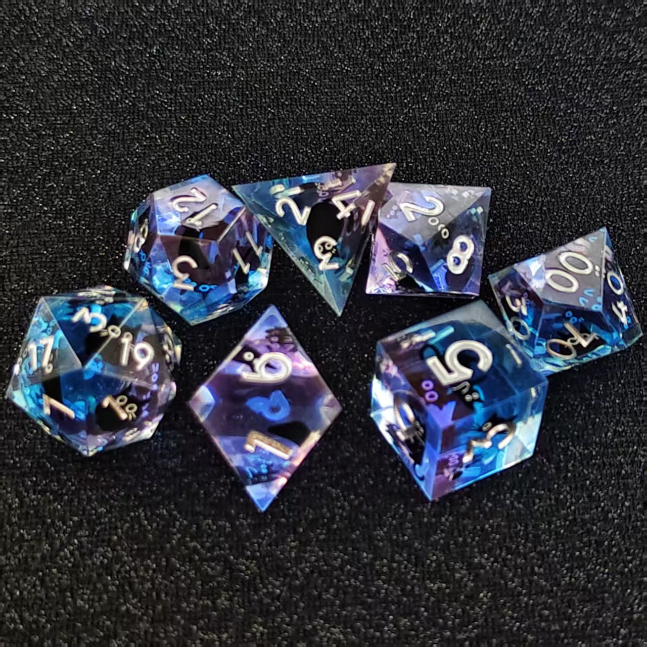 规格:7件套含:D4骰子 D6骰子 D8骰子 D10(0-9)骰子 D10(00-90)骰子 D12骰子 D20骰子