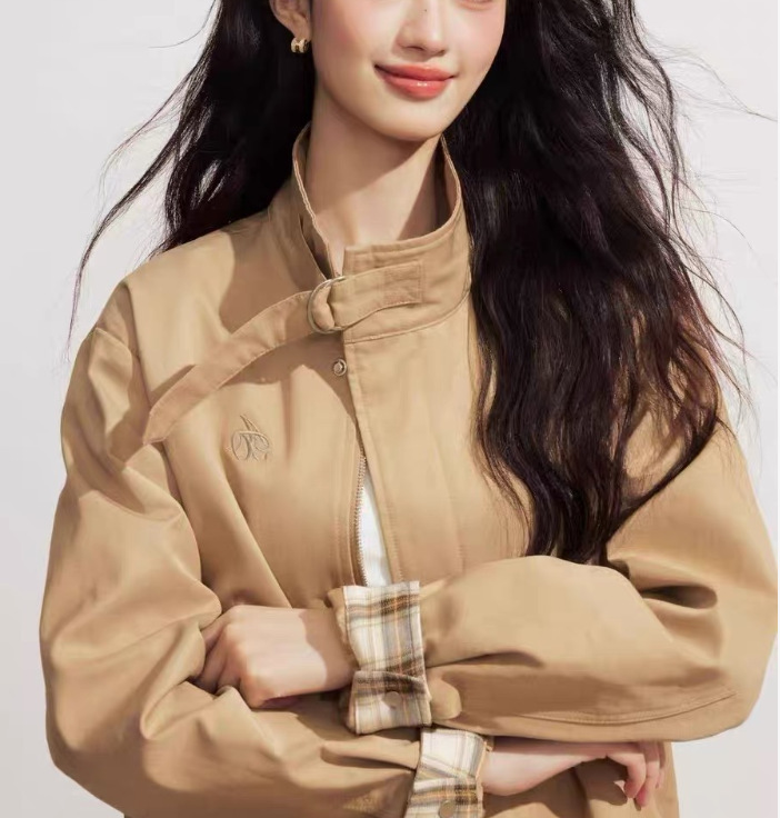 美式短款立领工装外套女2025秋款时尚宽松休闲袖口格子夹克上衣女,批发价,价格:128,厂家直销,美式短款立领工装外套女2025秋款时尚宽松休闲袖口格子夹克上衣女,免费拿样。