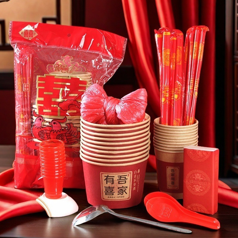 酒席餐具一次性碗筷套装过寿生日乔迁满月结婚加厚纸碗纸杯子